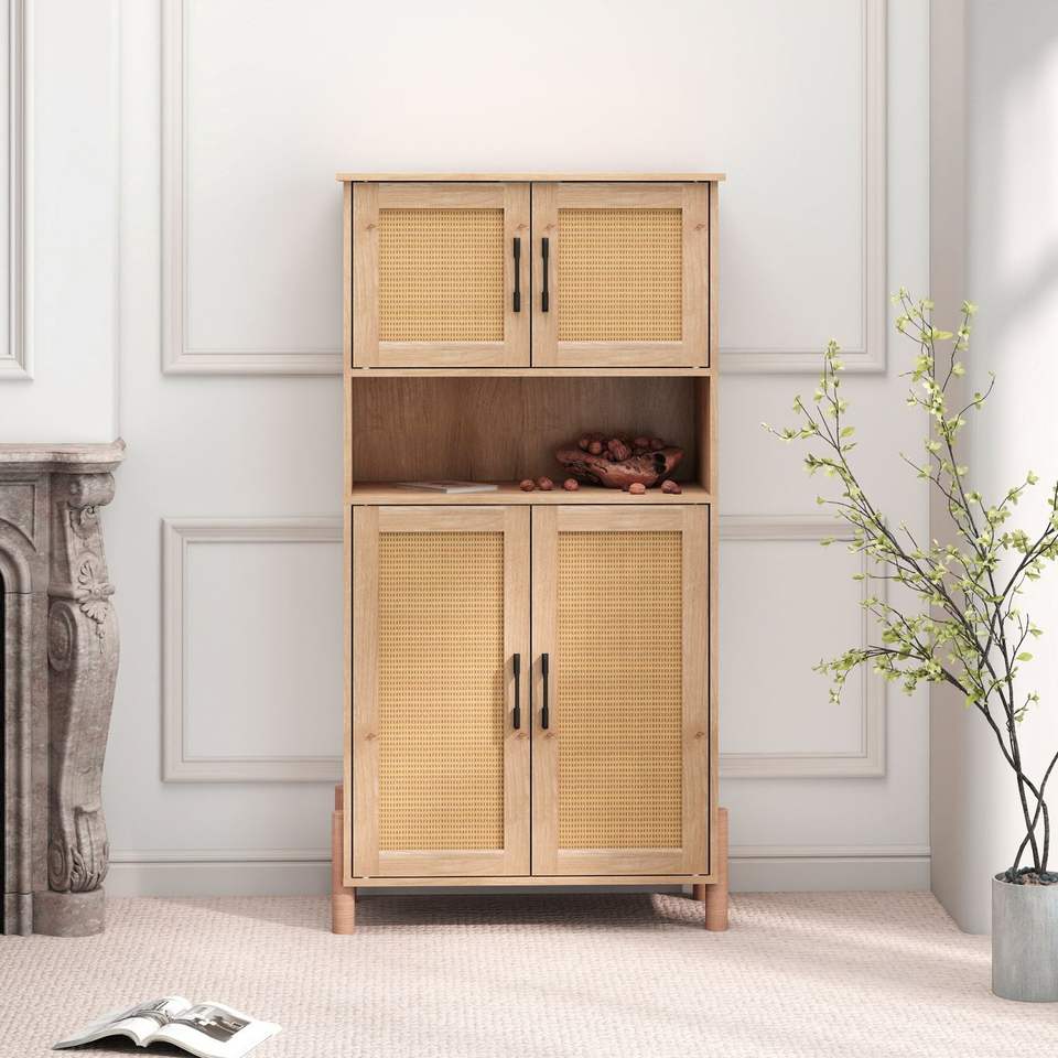 Metà del secolo moderno armadietto 4 porte in Rattan intrecciato e ripiani regolabili per soggiorno e sala da pranzo