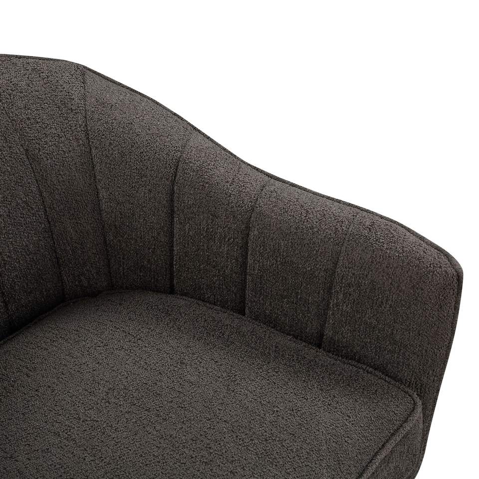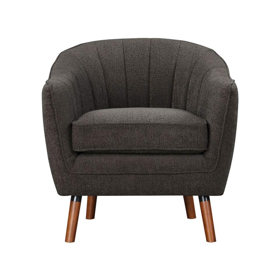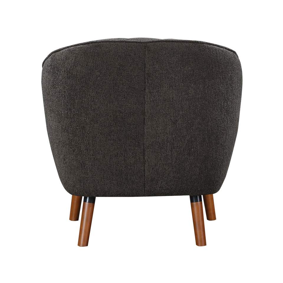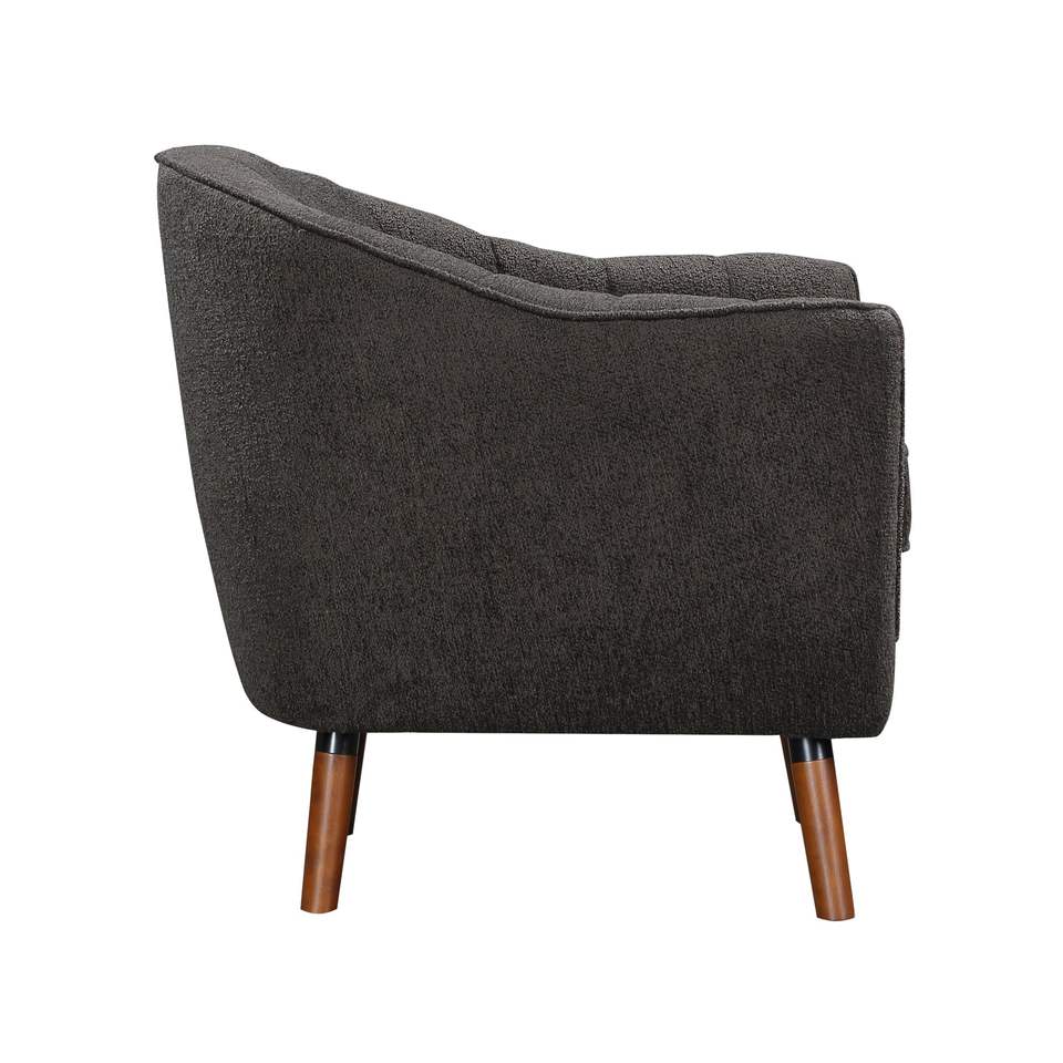 Poltrona Moderna Stile Mid-Century, 1 Pezzo, Rivestimento in Tessuto Chenille Color Antracite, Schienale Trapuntato, Gambe in Legno Marrone Massiccio