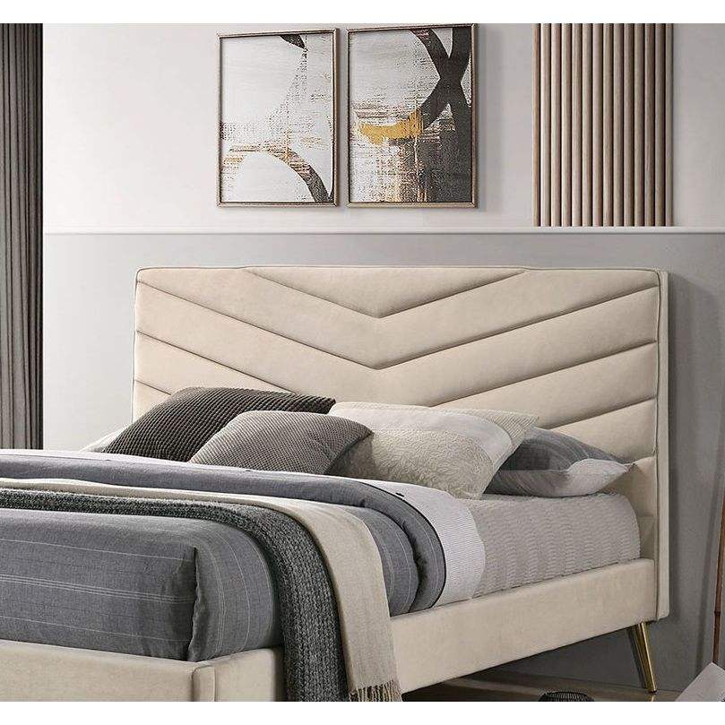 Testiera Imbottita per Letto King Size in Stile Mid-Century Modern, Design Chevron Trapuntato in Flanella Beige, 1 Pezzo