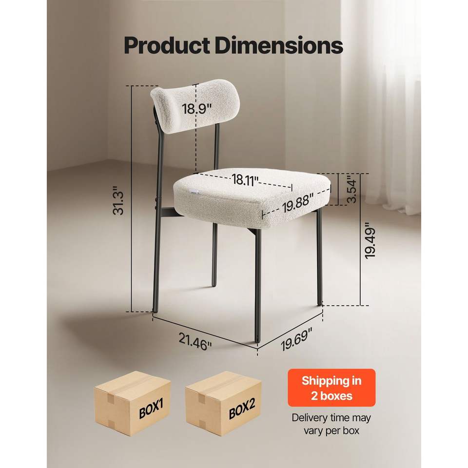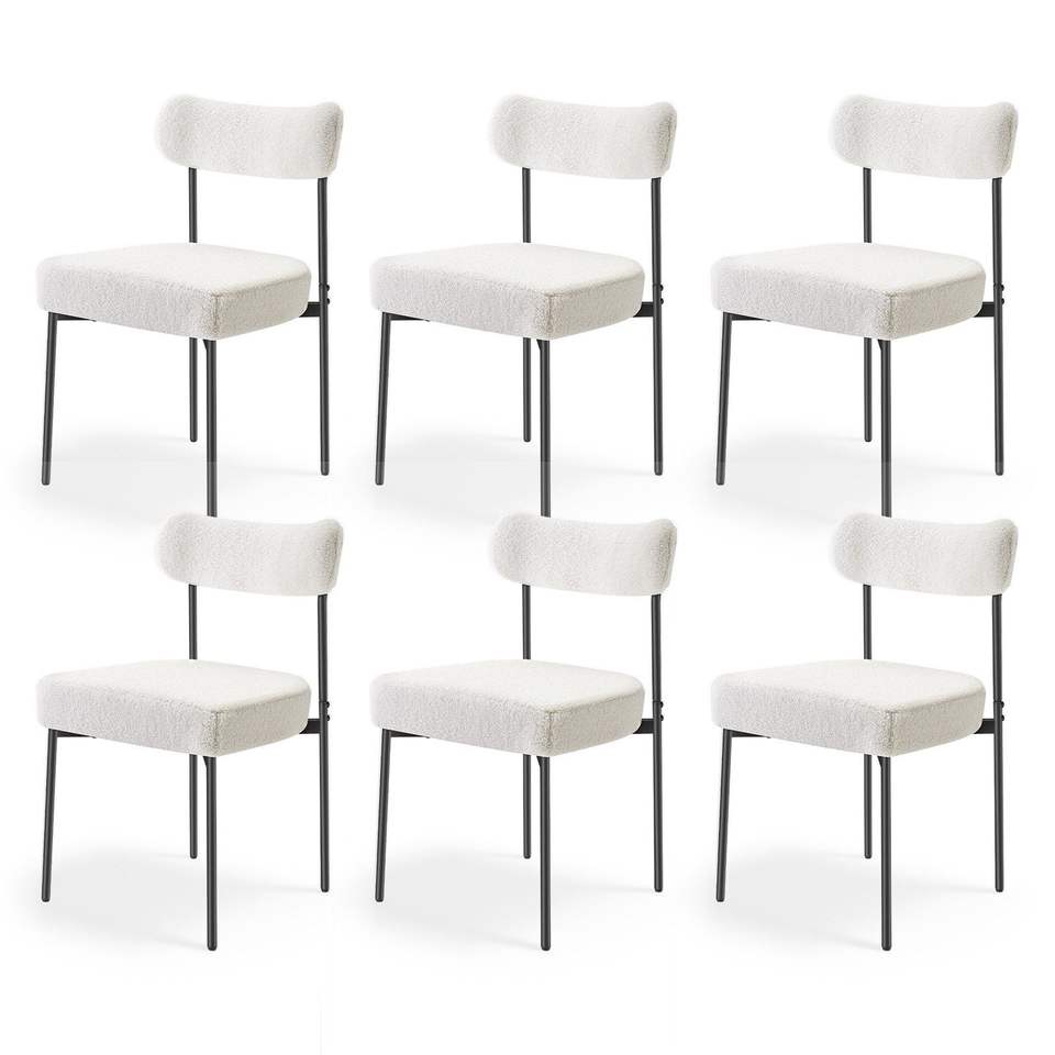Set di 6 Sedie da Pranzo Mid-Century Modern in Bouclé, Sedie Laterali con Rivestimento in Sherpa, Salvaspazio per Tavolo da Pranzo