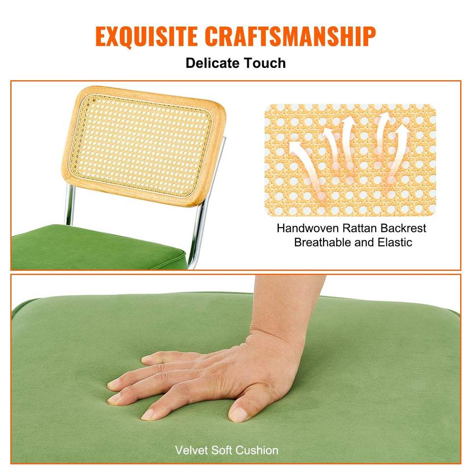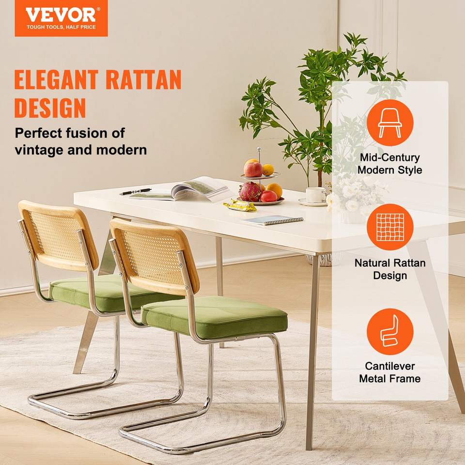 Set di 2 Sedie da Pranzo in Stile Mid-Century Modern, Sedia Retrò con Schienale in Rattan e Seduta Imbottita in Velluto