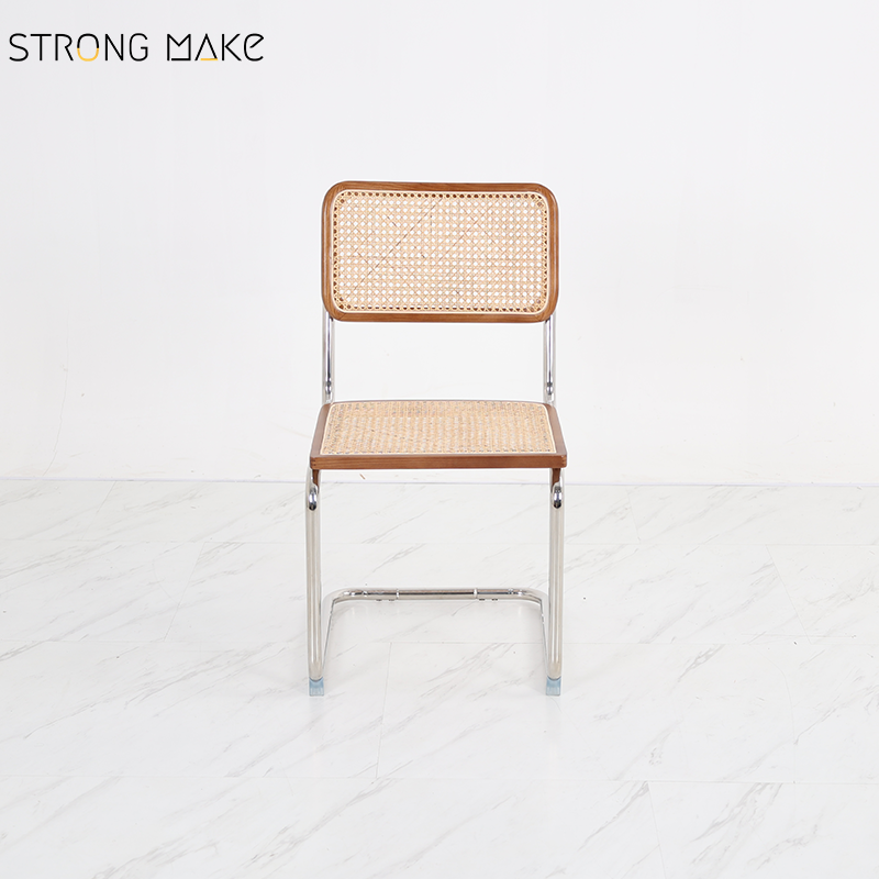 Mid Century Modern Dinning Chair Walnut Color Furniture Wooden Woven Cane Wicker Cesca Rattan Dining Chair with Armrest