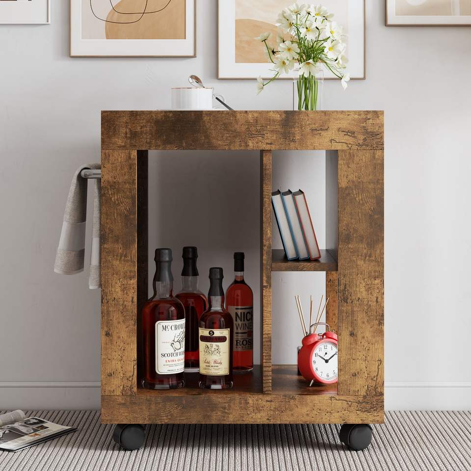 Mobiletto Laterale Moderno Stile Mid-Century per Divano, Carrello Portaoggetti Marrone per Soggiorno