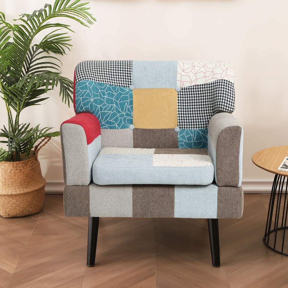 Metà del secolo moderno Patchwork accento divano singolo per soggiorno ufficio studio comodo colorato Club sedia per la lettura