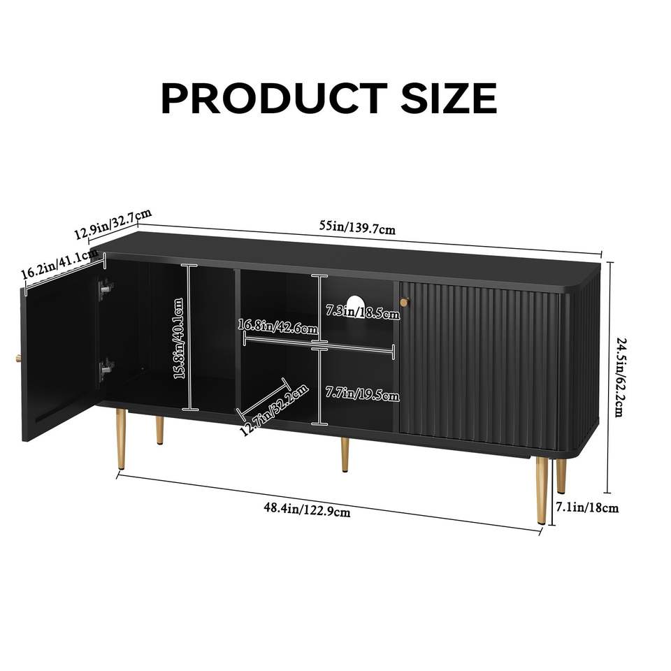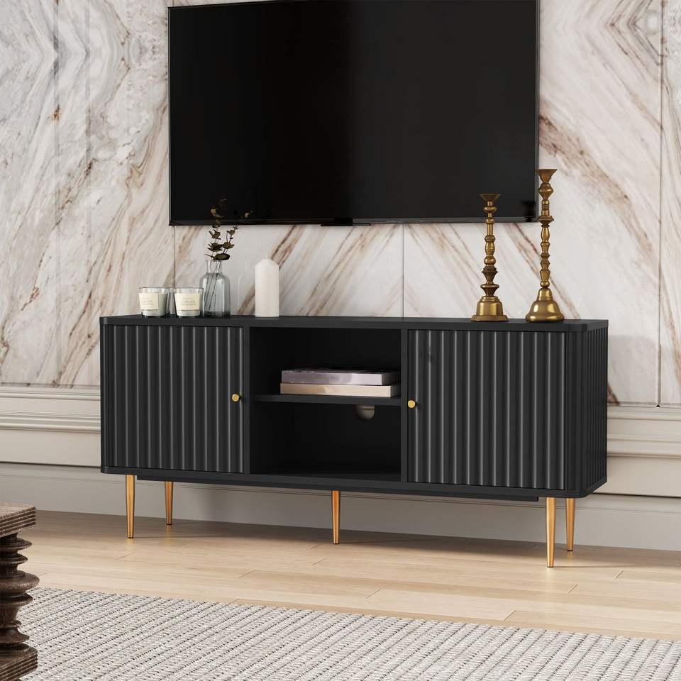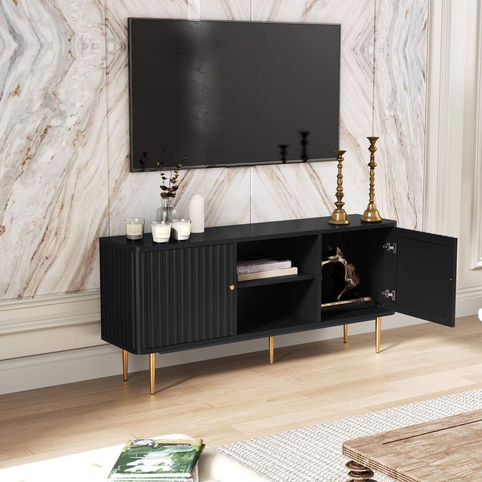 Mobile TV Moderno Bianco Stile Mid-Century 55/60/65 Pollici, Centro Intrattenimento con Spazio di Archiviazione per Soggiorno