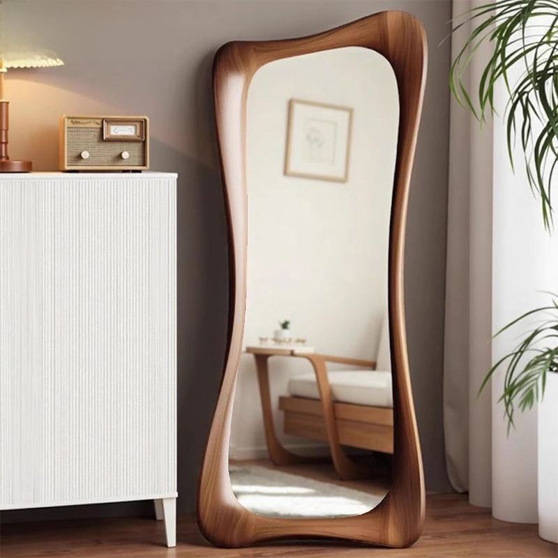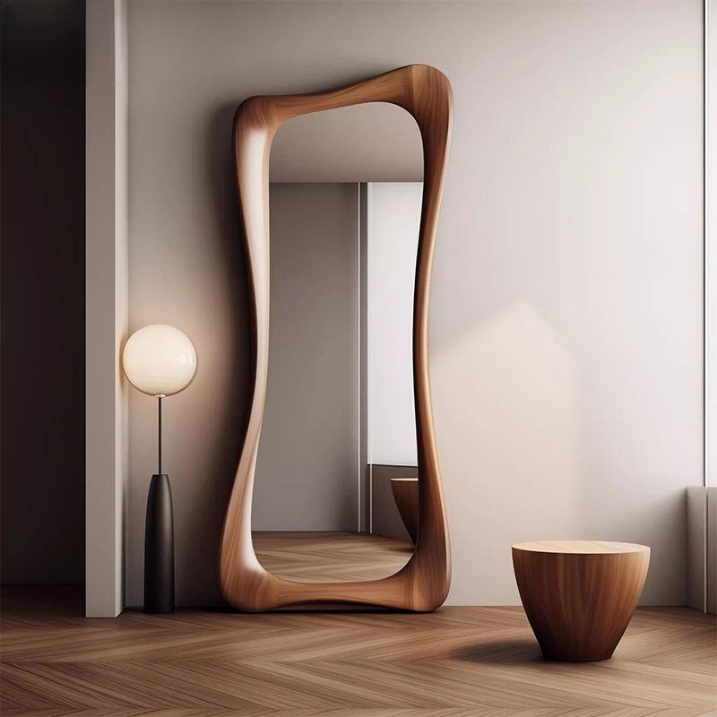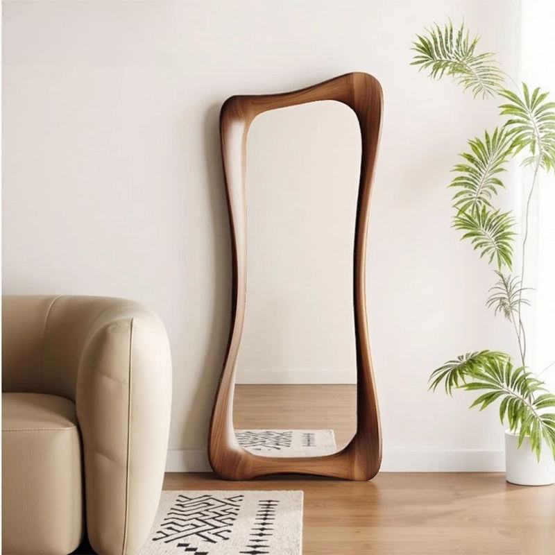 Specchio a Figura Intera Ondulato in Legno Stile Mid-Century Moderno, Specchio Irregolare da Parete per Arredamento Casa, Vendita all'Ingrosso