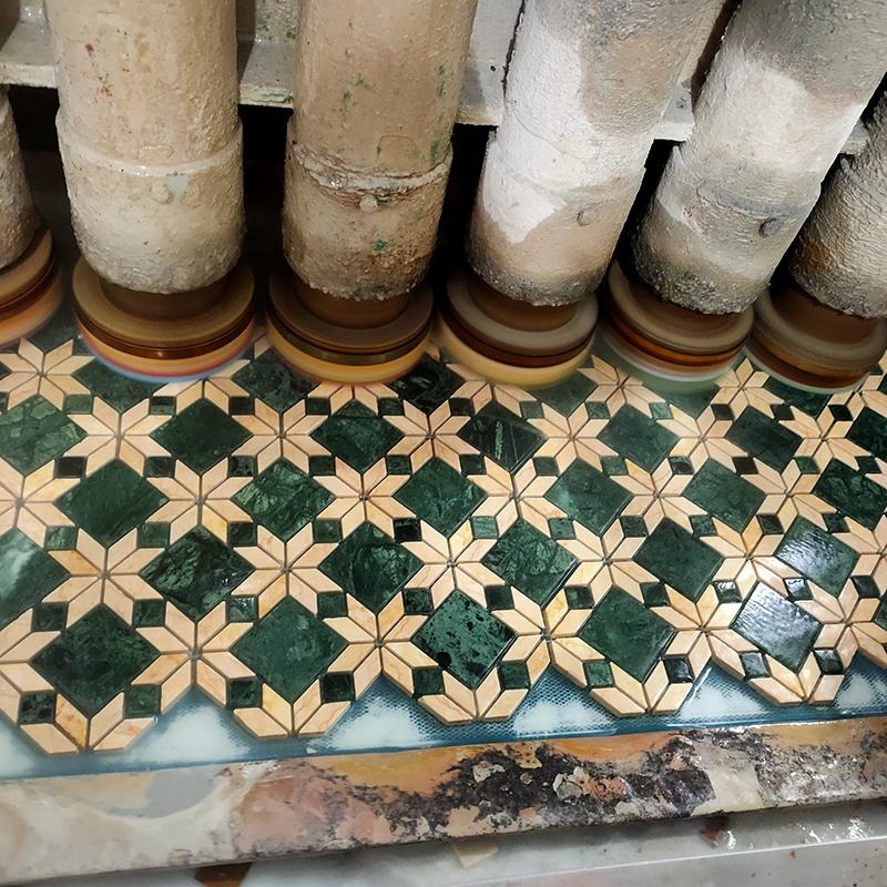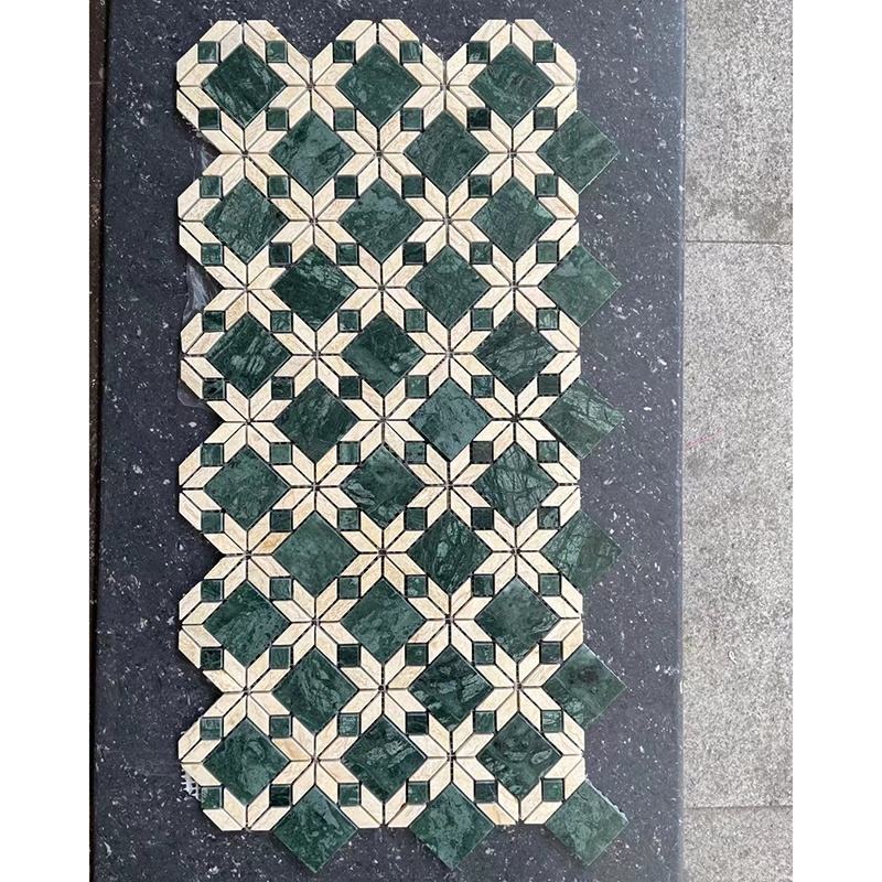 Mosaico in Marmo di Pietra per Pavimenti e Rivestimenti con Design Classico Retrò Mid-Century Parquet Waterjet Beige e Verde