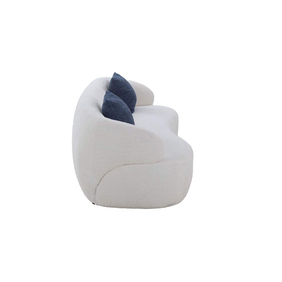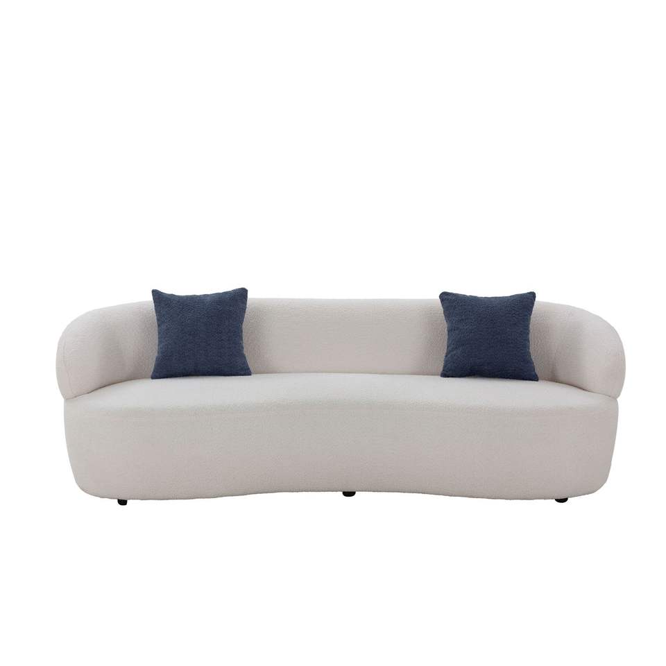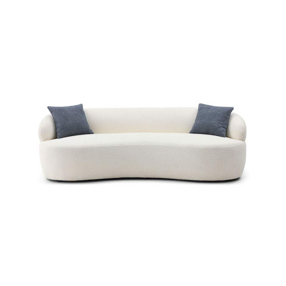 Divano curvo a 3 posti in tessuto bouclé beige, stile Mid-Century Modern, per soggiorno, camera da letto, ufficio.