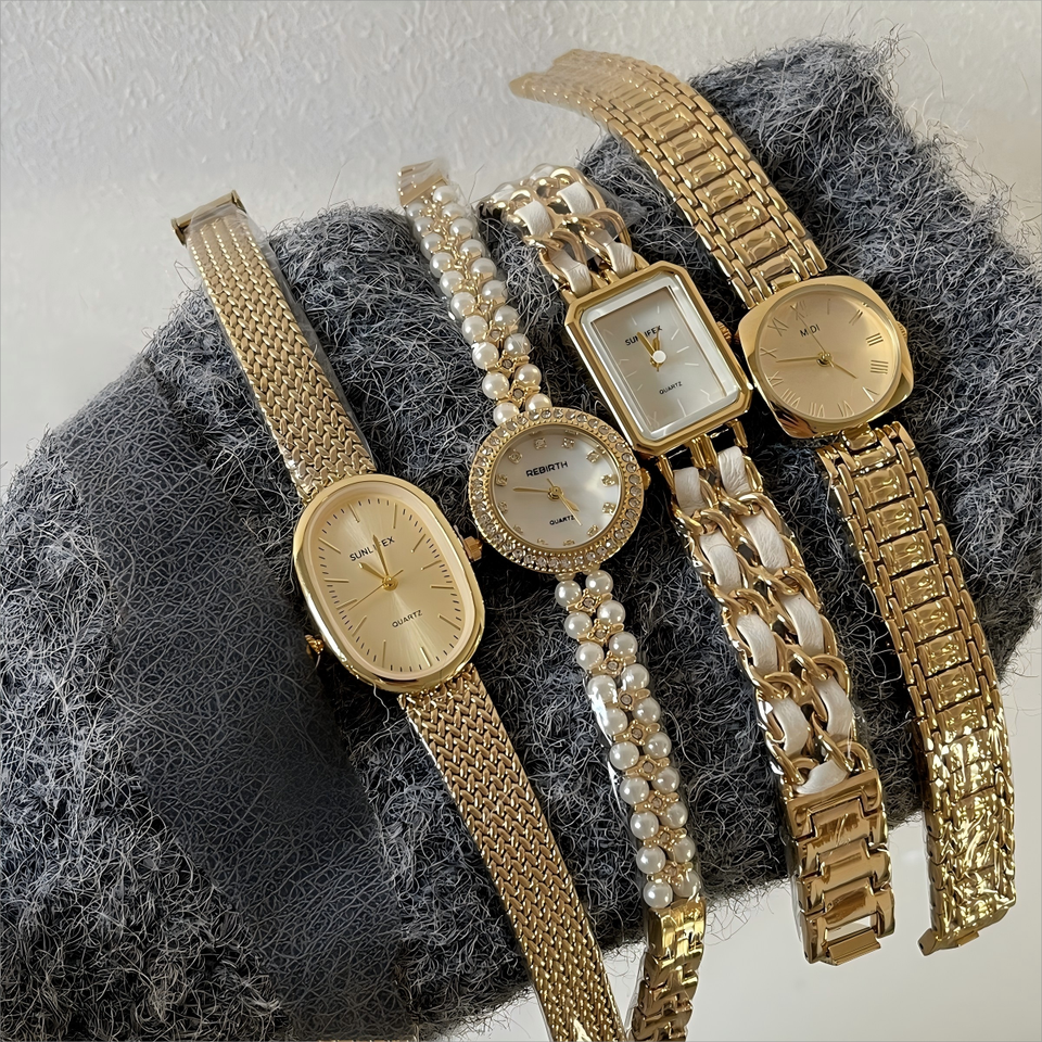 Orologio da Donna con Cinturino in Acciaio Dorato Stile Vintage Retrò di Lusso Senso di Alta Classe
