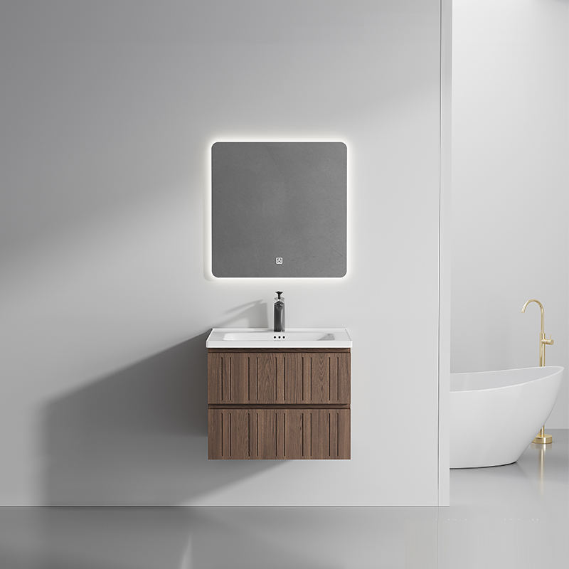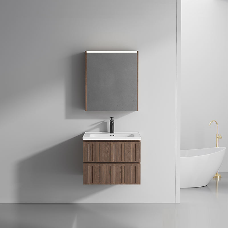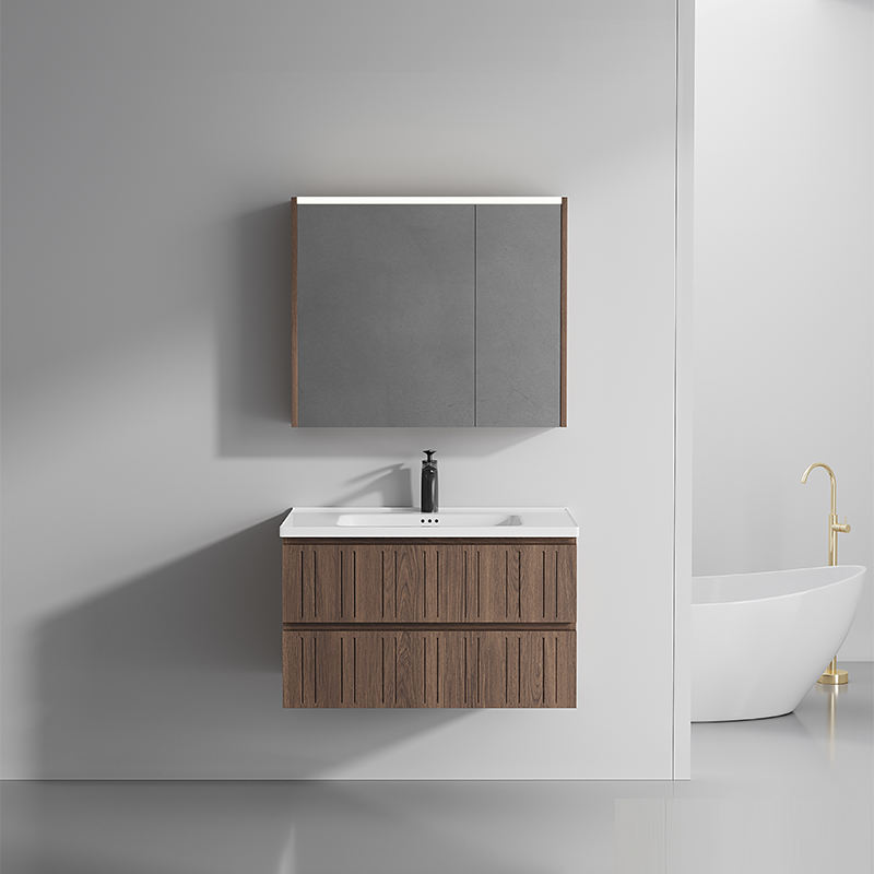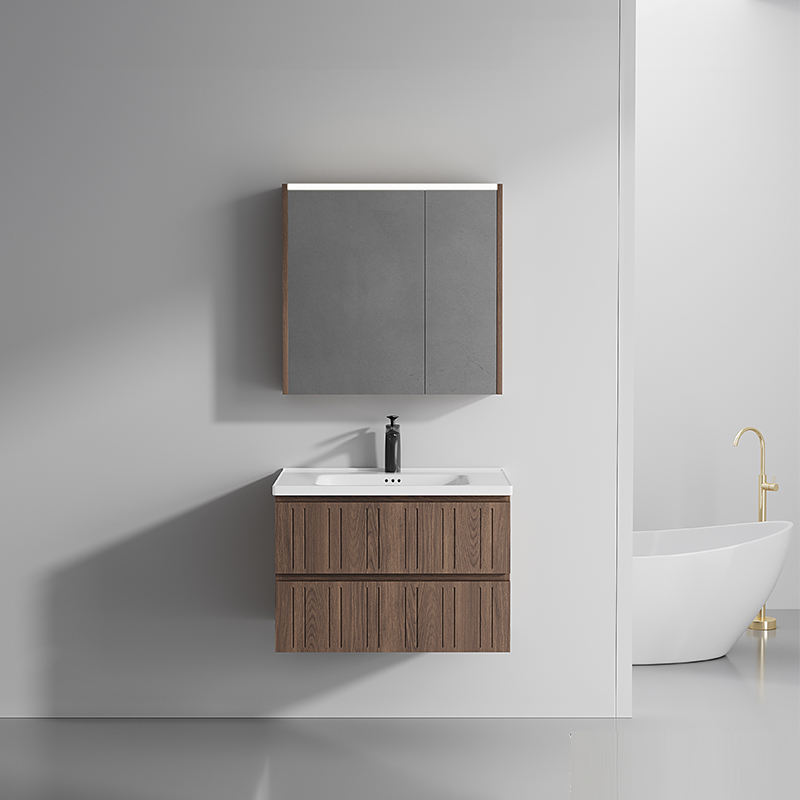 Mobile Bagno Integrato in PVC Stile Antico Medioevale Color Noce, Nuovo Design Cinese con Cassetti Contenitori e Lavabo
