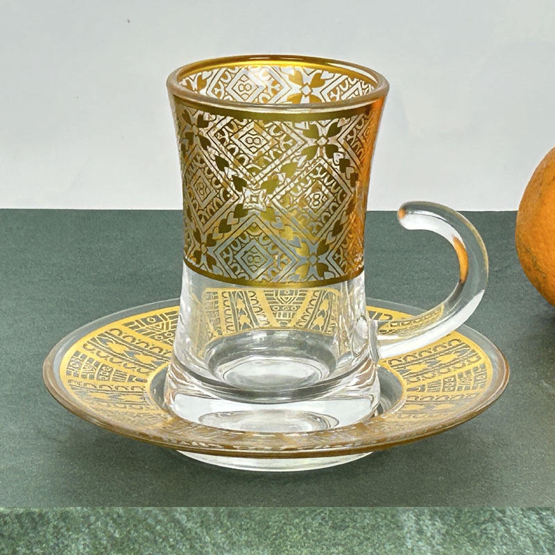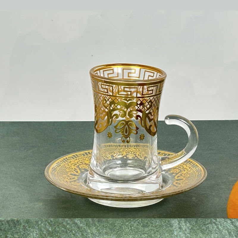 Set da Caffè Arabo Turco del Medio Oriente con Decorazioni Dorate, Tazza da Tè in Vetro con Piattino, Set di Tazze da Caffè Etiopi da 100ml