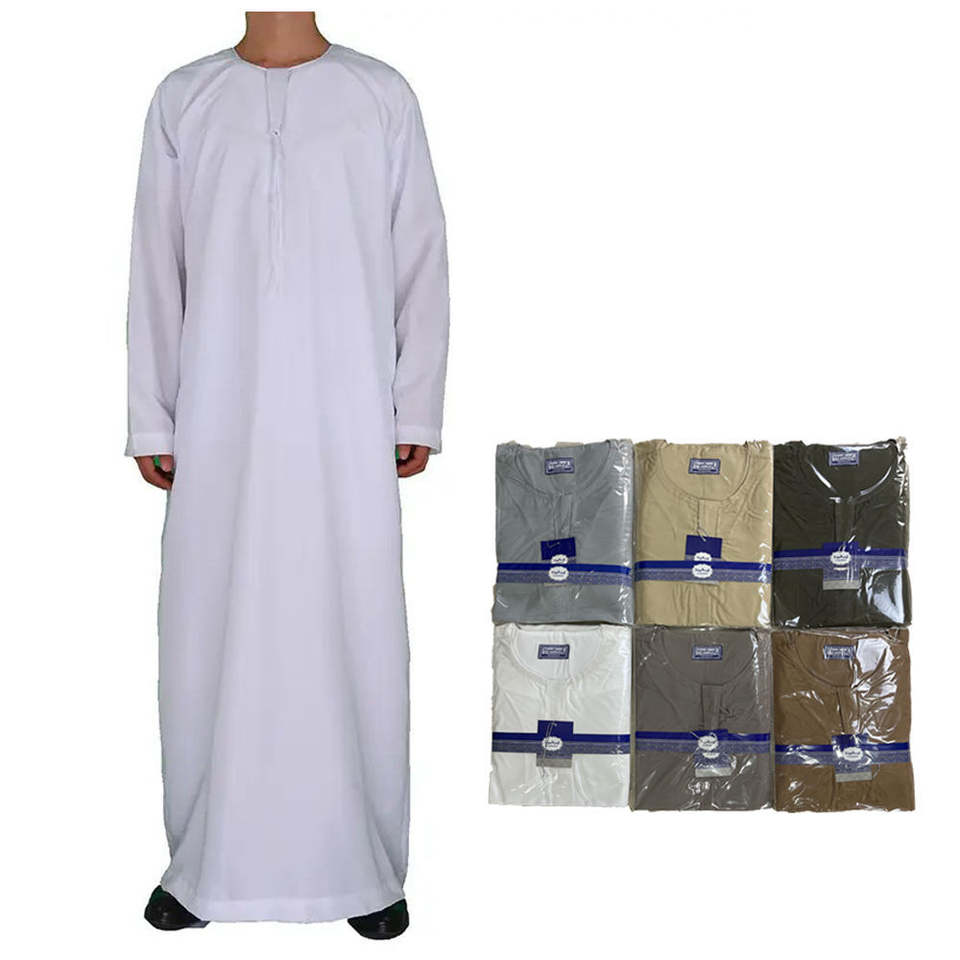 Middle Eastern Men's Wool Abaya Solid Color Pocket Design Neck Long Garment Factory Direct Export Stock Wholesale