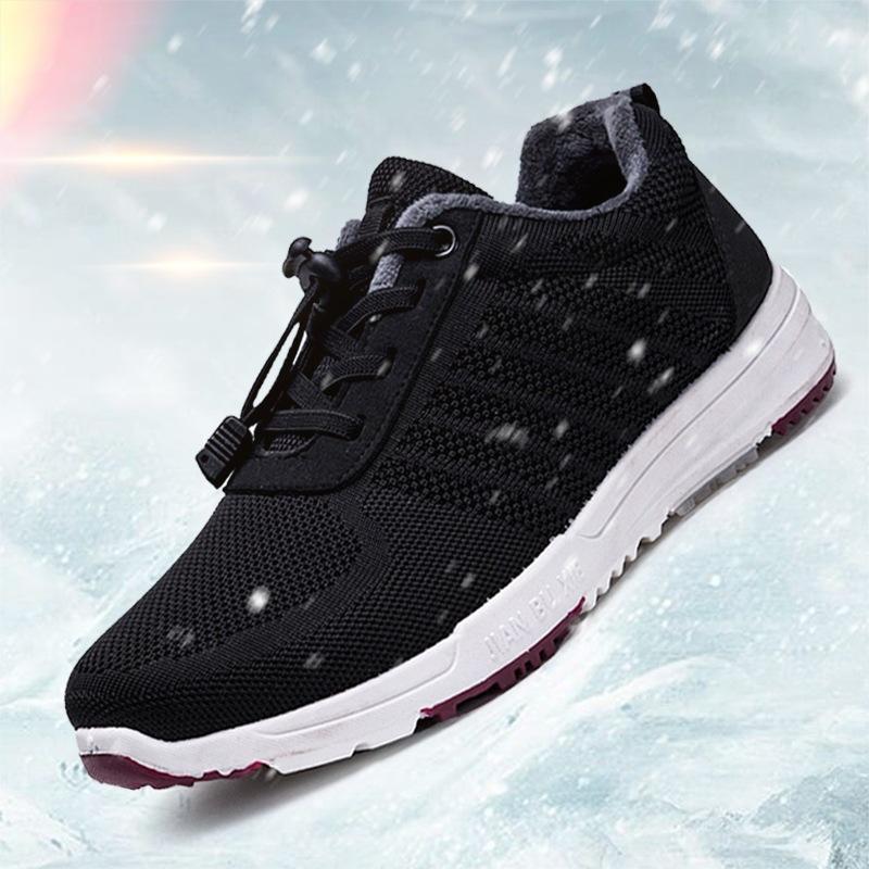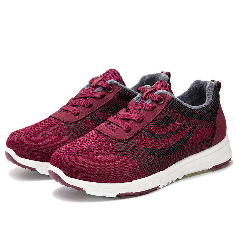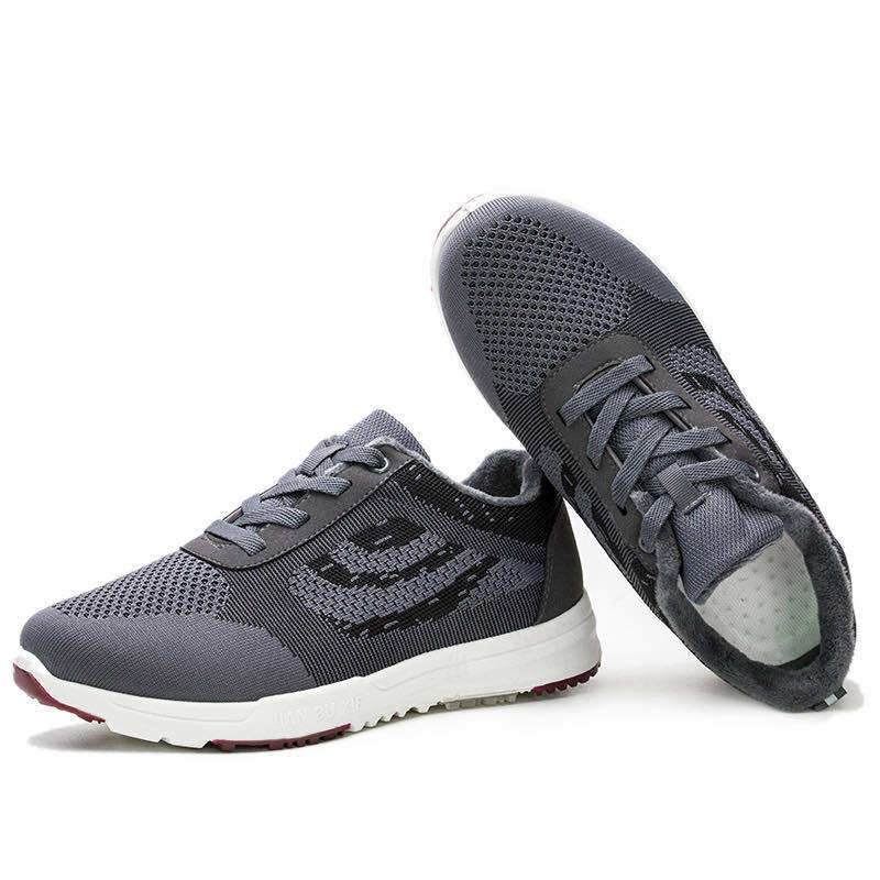 Di mezza età e anziani a piedi calore e piegare sport allentati e forte passo scarpe