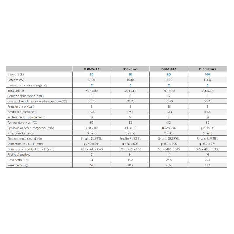 Capacità di 100 litri: Con una capacità di 100 litri, questo scaldabagno è adatto per l'uso domestico, fornendo acqua calda sufficiente per le esigenze quotidiane.