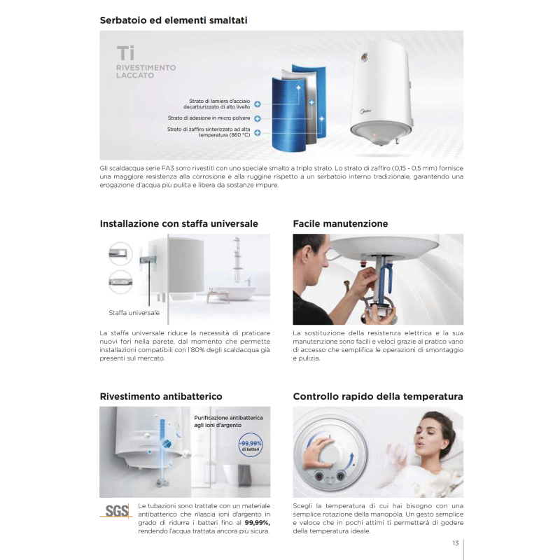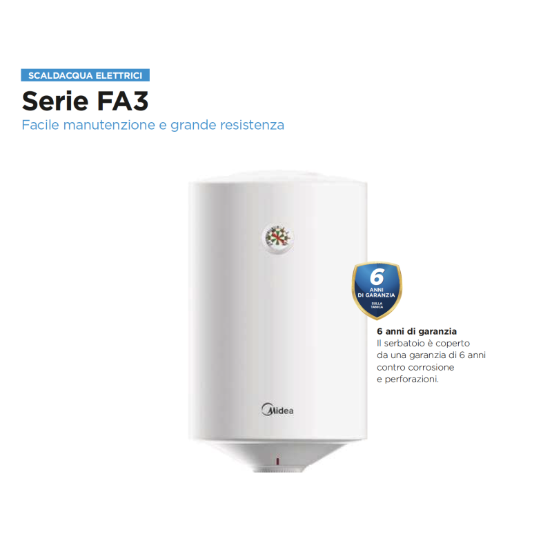 Scaldabagno Elettrico Verticale Midea D100-15FA3 100L per Uso Domestico, Scocca in Plastica, Installazione a Parete, Serbatoio Smaltato