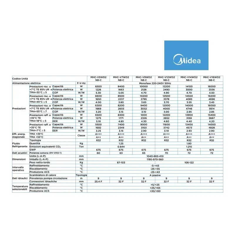Midea MHC-V5WD2N8-C A+++ Sistema HVAC Domestico 5kW Monoblocco Mini Chiller Pompa di Calore Inverter Made in Italy