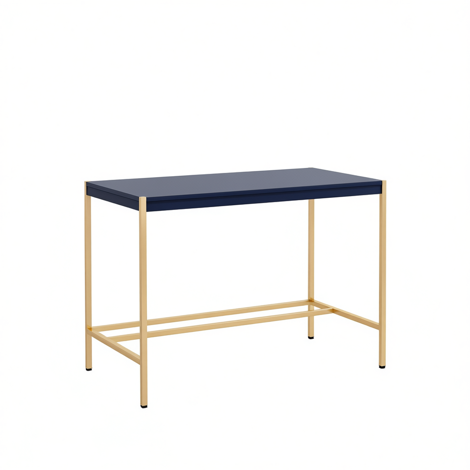 Scrivania Midriaks Blu Navy con Finitura Oro, Superficie in Metallo USB, Scrivania per Computer, Arredamento per Ufficio Domestico