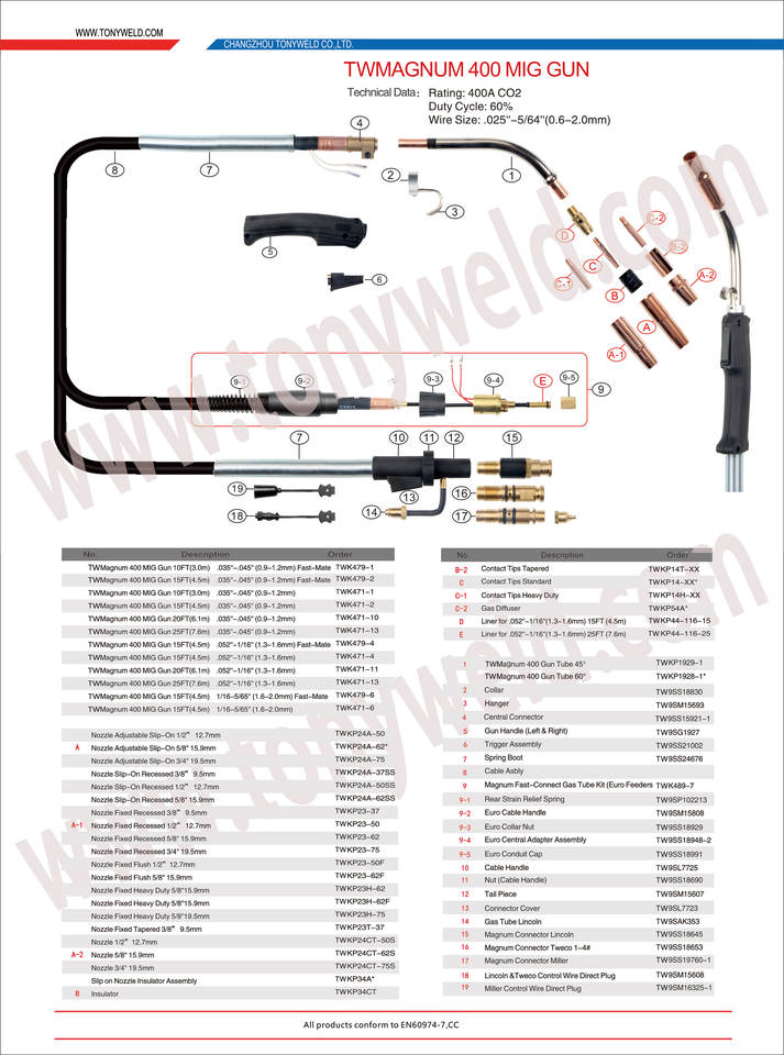 WIRE SIZE mig/mag welding torch