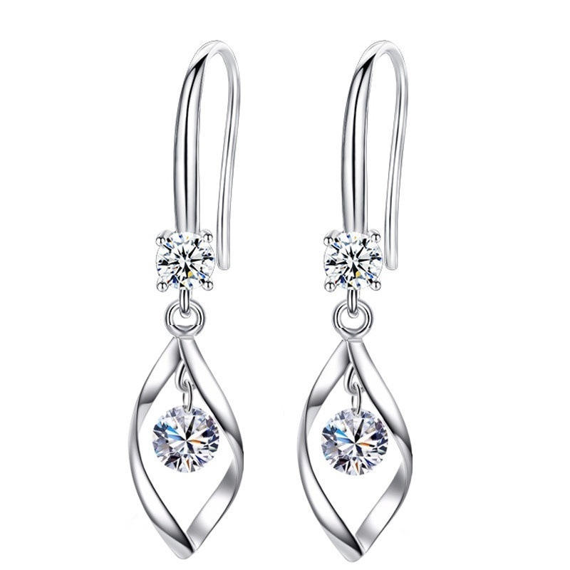 Orecchini pendenti in argento 925 Migre Iren con design geometrico in cristallo e strass per donna, stile classico da matrimonio