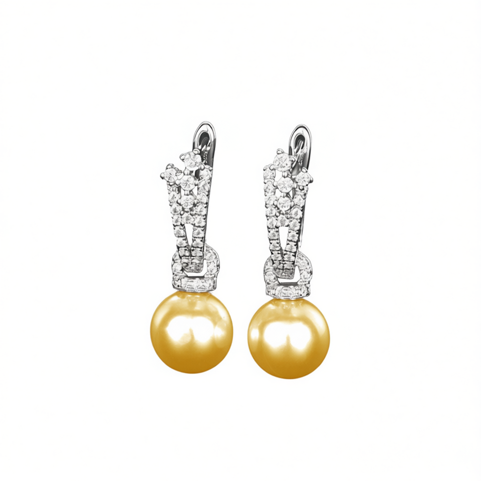 Mikimoto South Sea Pearl Earrings 925 Silver Rhodium Plated AAA Round Yellow Cultured Pearl Studs Classic Wedding Jewelry