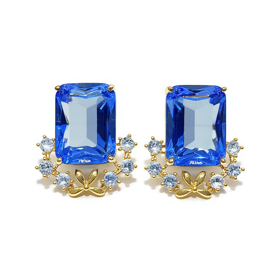 Mikina Blue Gemstone Stud Earrings 22k Gold Plated Butterfly Design Fashion Party Jewelry for Women