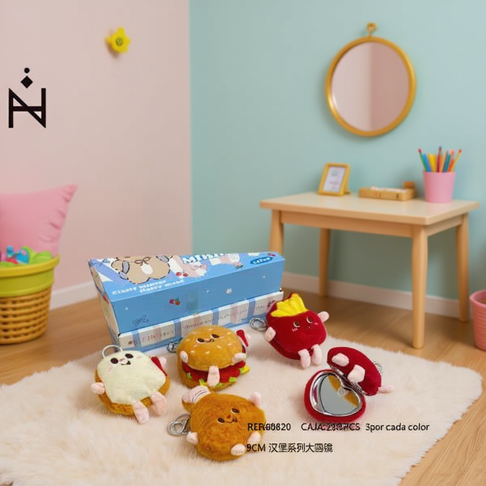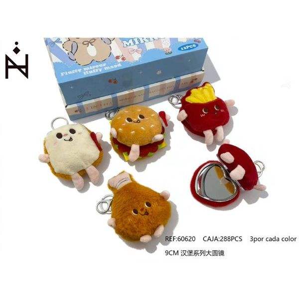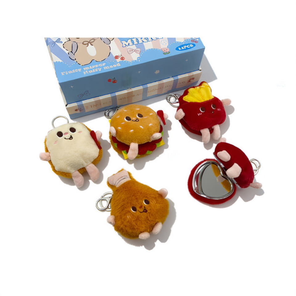 Portachiavi in peluche Miko da 9 cm, serie Hamburg, grande specchio rotondo, morbido, a forma di cartone animato, per bambini e ragazze