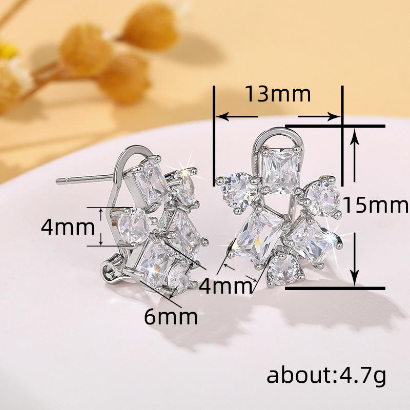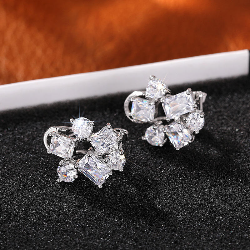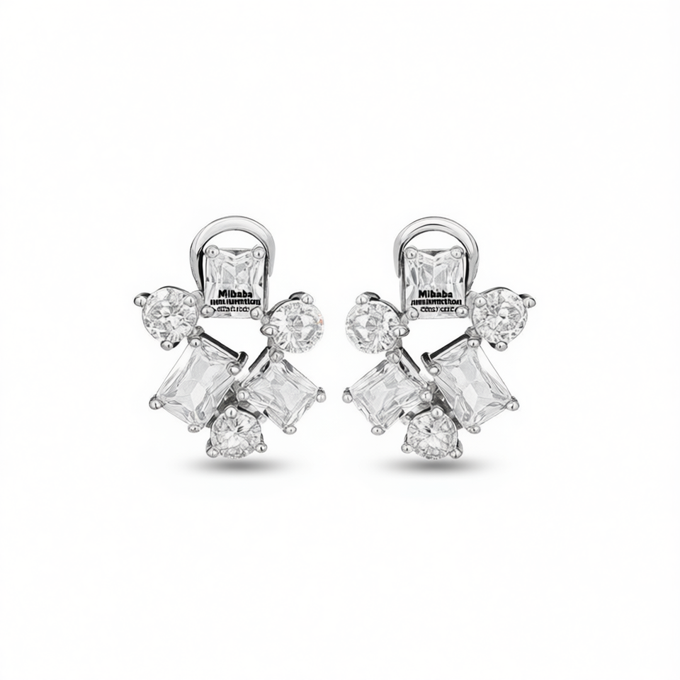 Orecchini a Perno Milaba in Oro Bianco con Cristalli Geometrici e Strass, Classici da Donna per Uso Quotidiano