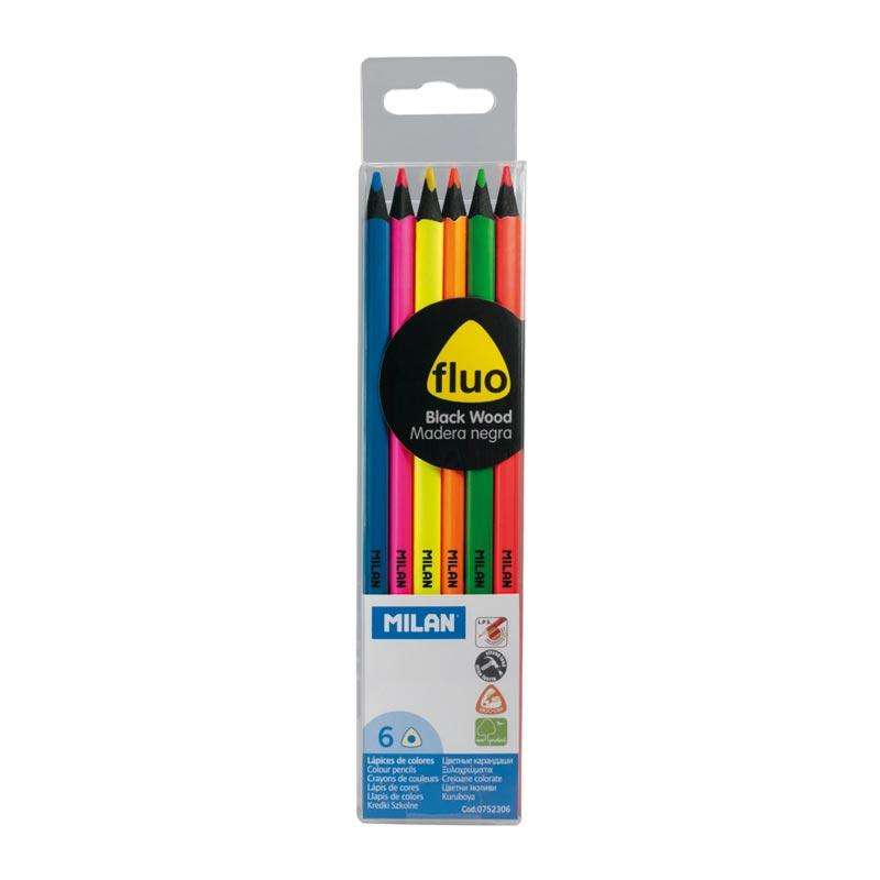 Milan Black Wood Fluorescent Colored Pencils 6 Vibrant Colors
