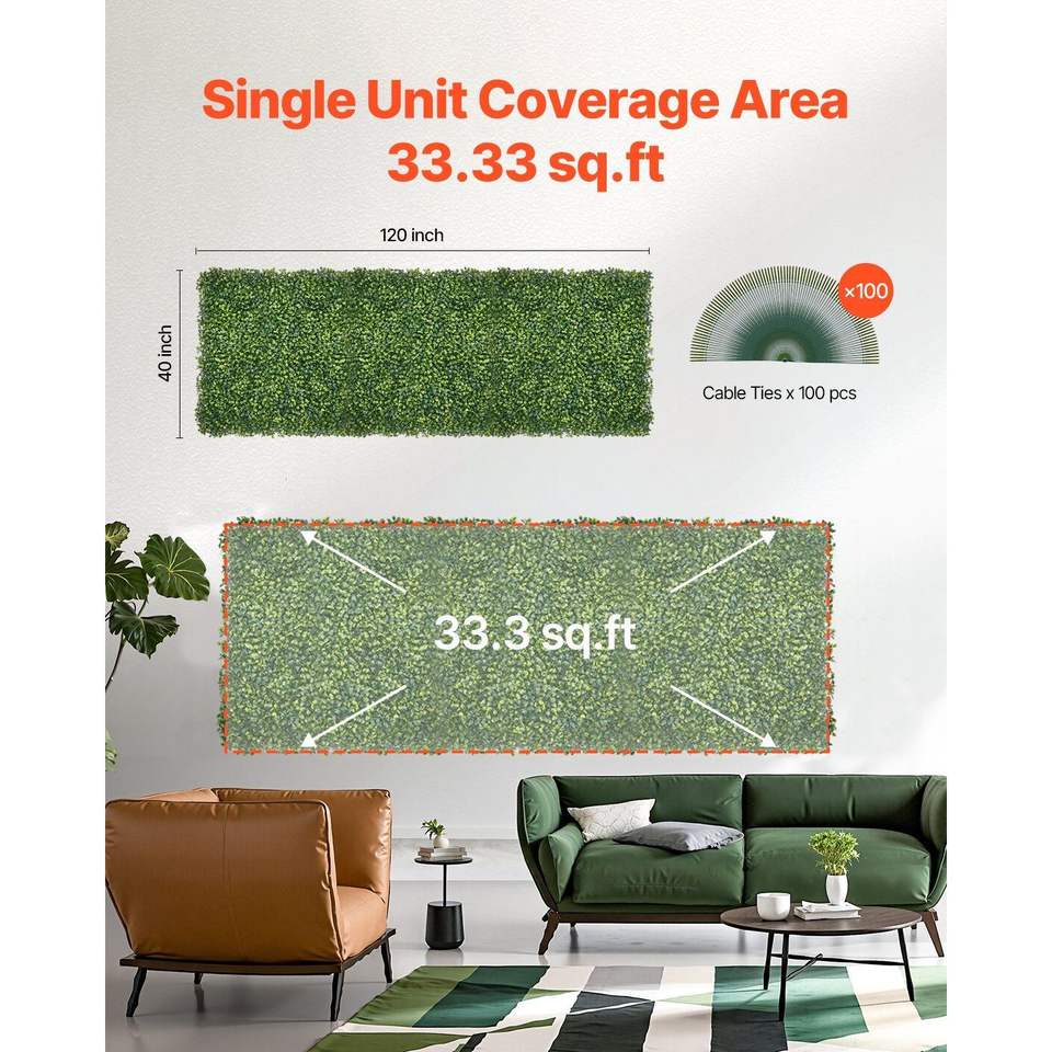 Pannello di Bosso Verde Artificiale Milan 40 x 120 Pollici, Divisorio per Interni ed Esterni, Pannelli Murali in Erba Sintetica per Recinzioni in Edera