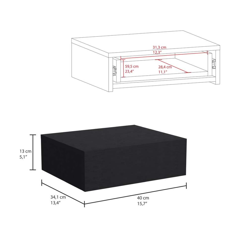 Comodino Sospeso Nero Milano con Cassetto, Tavolino da Parete per Camera da Letto