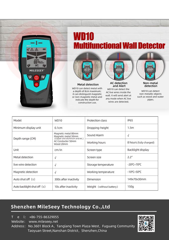 Mileseey Wd10 Scanner Industriale per Pareti Metalliche, Rilevatore Multifunzionale Portatile per Cablaggio Senza Acqua e Polvere