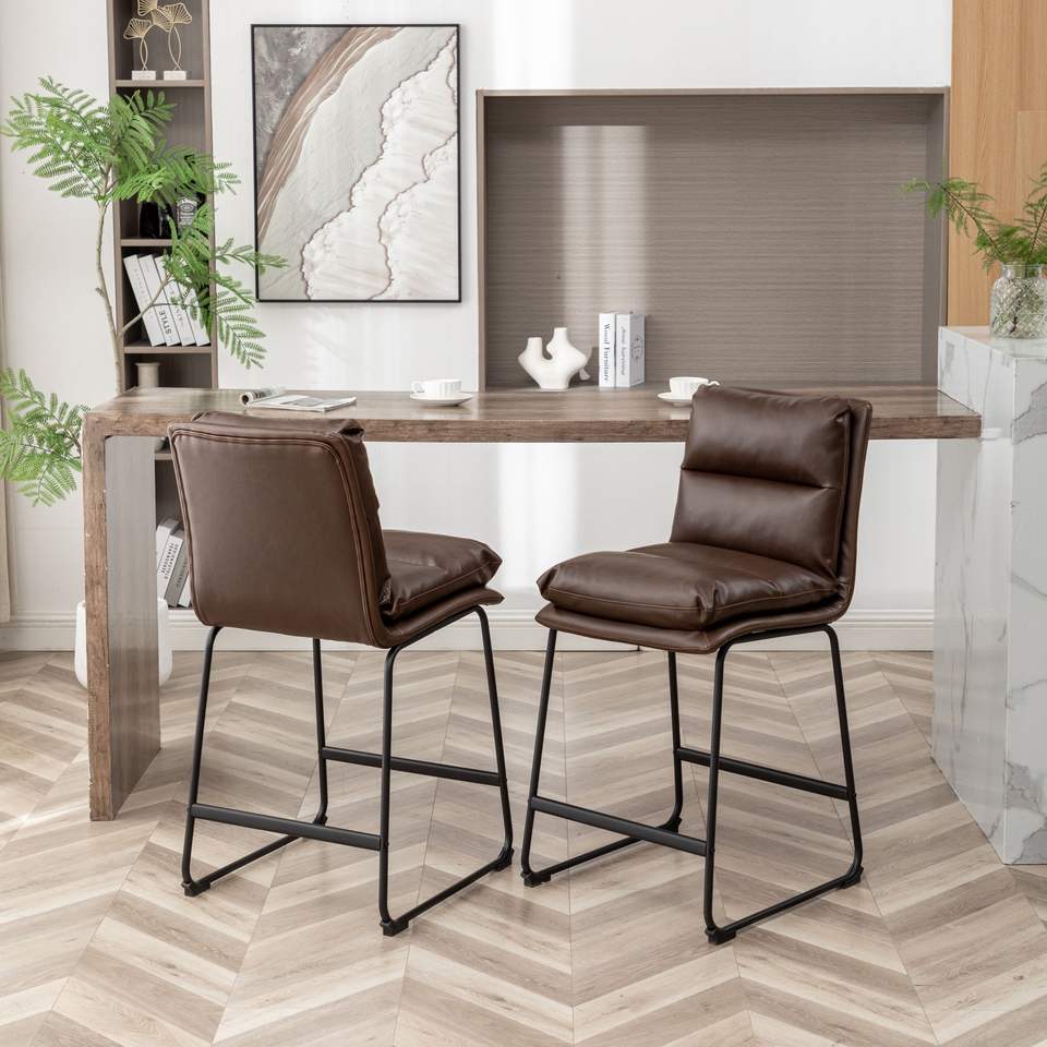 Milos 26-Inch Counter Height Antique Brown Upholstered Bar Stools Set of 2