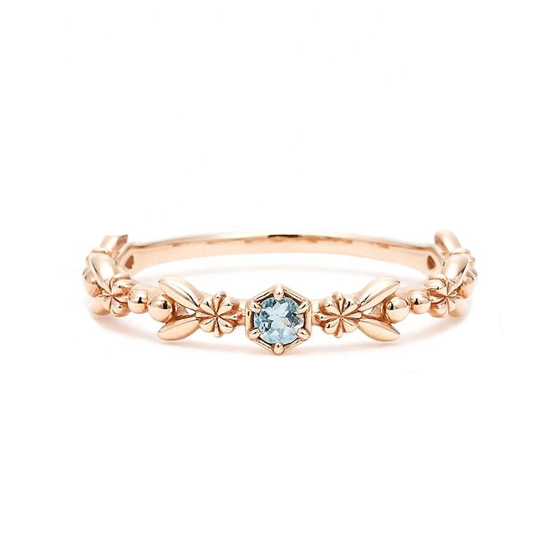 anello con acquamarina elementare con insetto a foglia vintage con pietre preziose