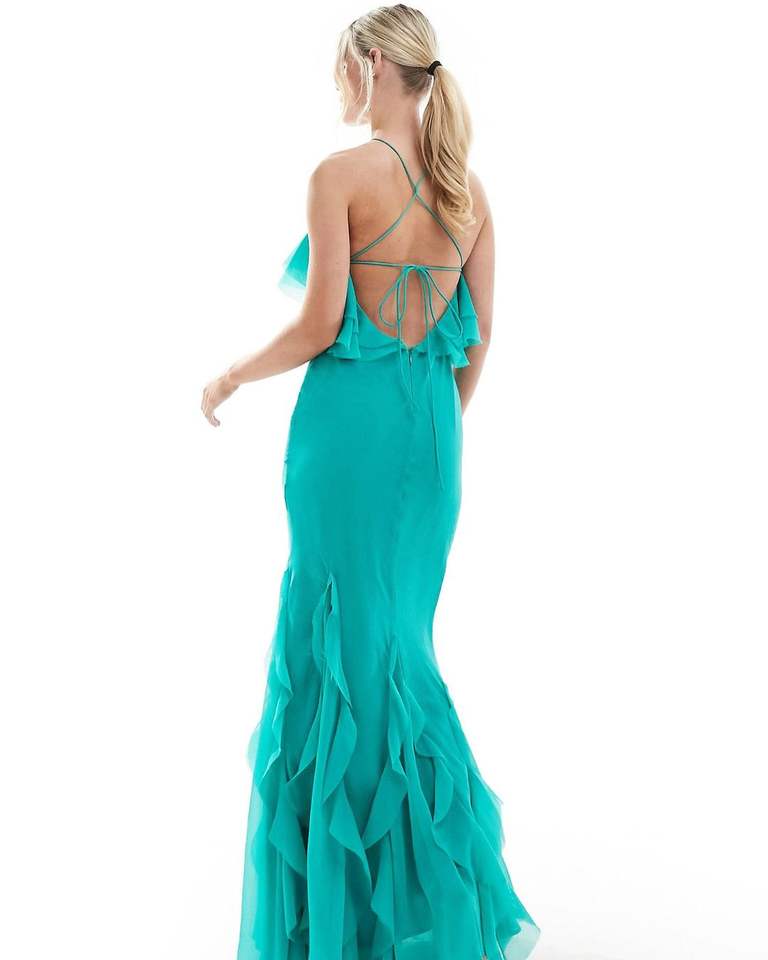 Abito da sposa Mily ML198 Maxi abito da sera con dettaglio ritagliato e dettaglio con sirena incrociata