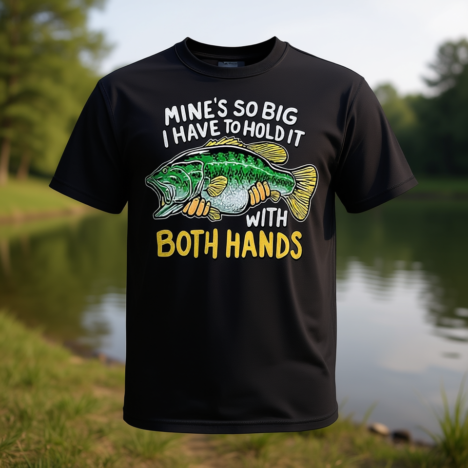Mine's so Big I Have to Hold It with Both Hands on Back T-Shirt-Promotional Customizable T-Shirt