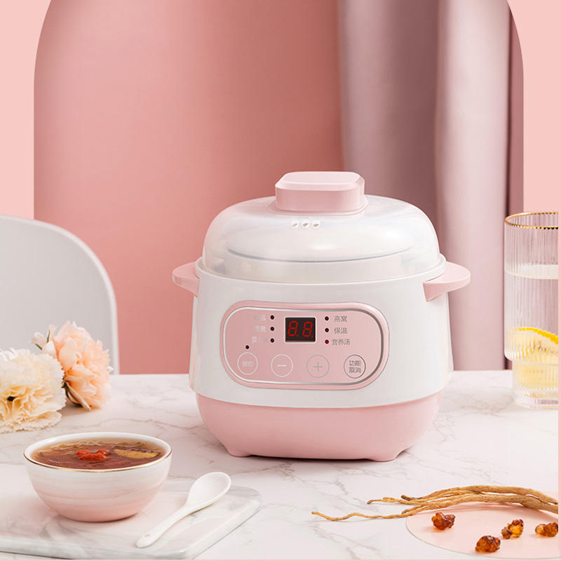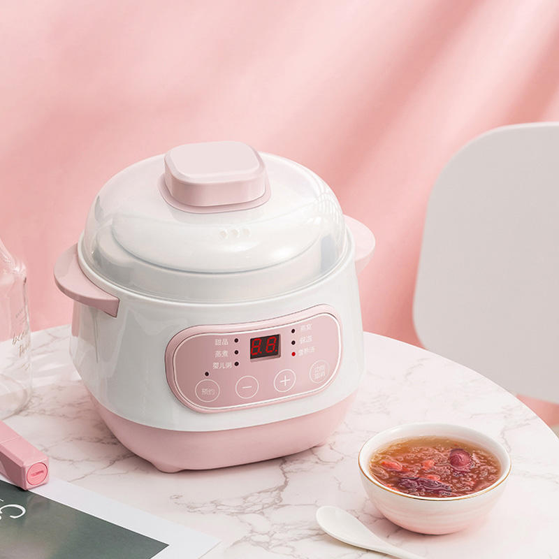 Mini 1L manual slow stew pot with ceramic inner pot and plastic lid, suitable for home cooking