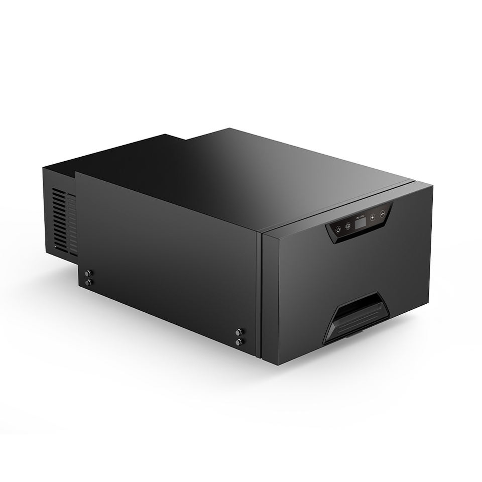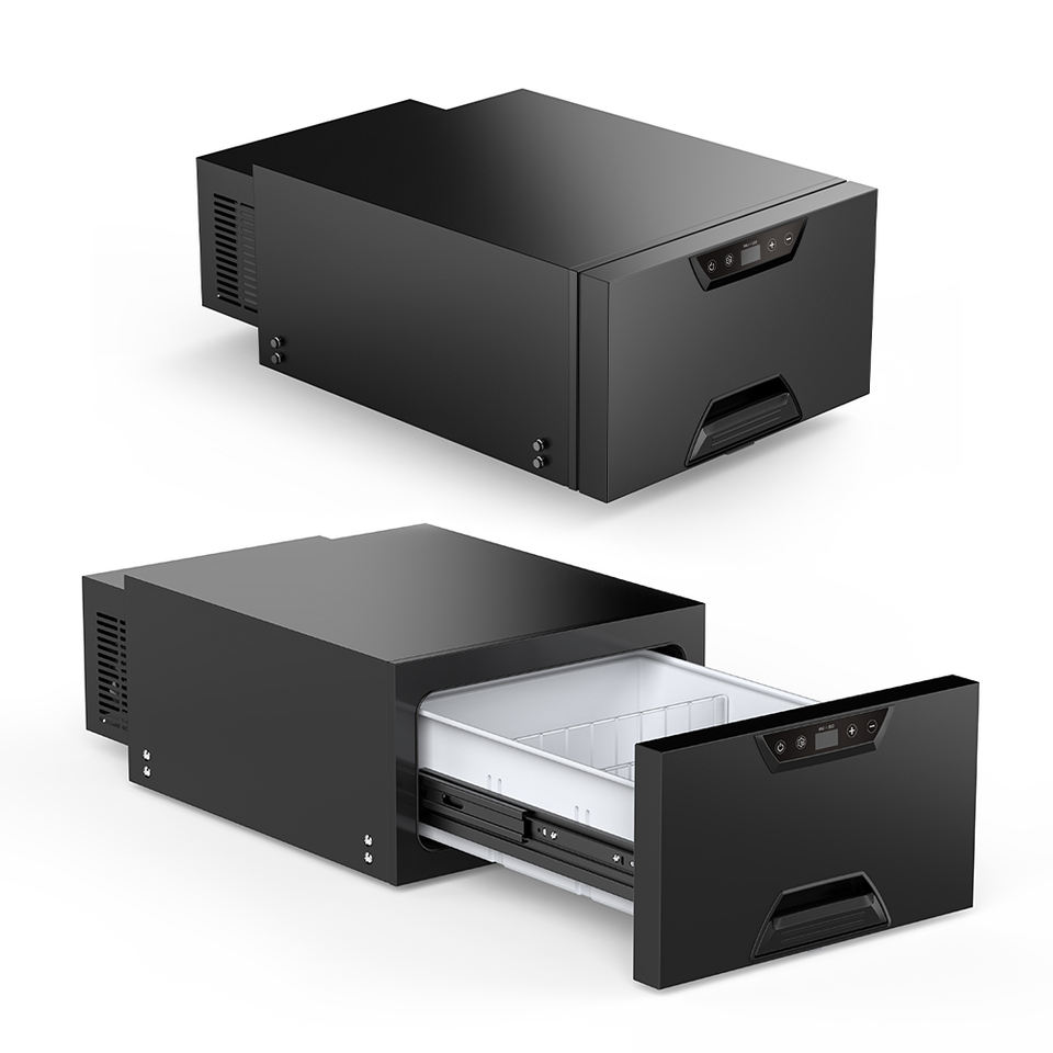 Mini Frigorifero Portatile da 30L con Cassetto, DC 12V 24V, Comodo Frigorifero-Congelatore a Compressore per Auto, Piccolo Frigo Nero per Auto