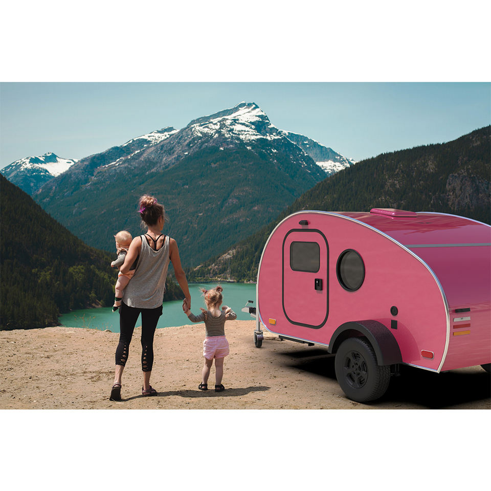 Caravan a goccia leggero, piccolo camper off-road a forma di goccia.