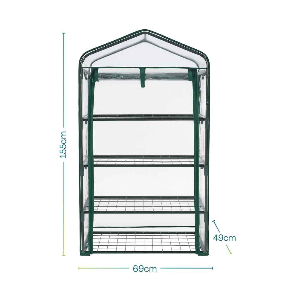 Mini Balcony Greenhouse 4 Shelves 69x49x155cm Steel/Transparent PVC Winter Plant Protection for Garden