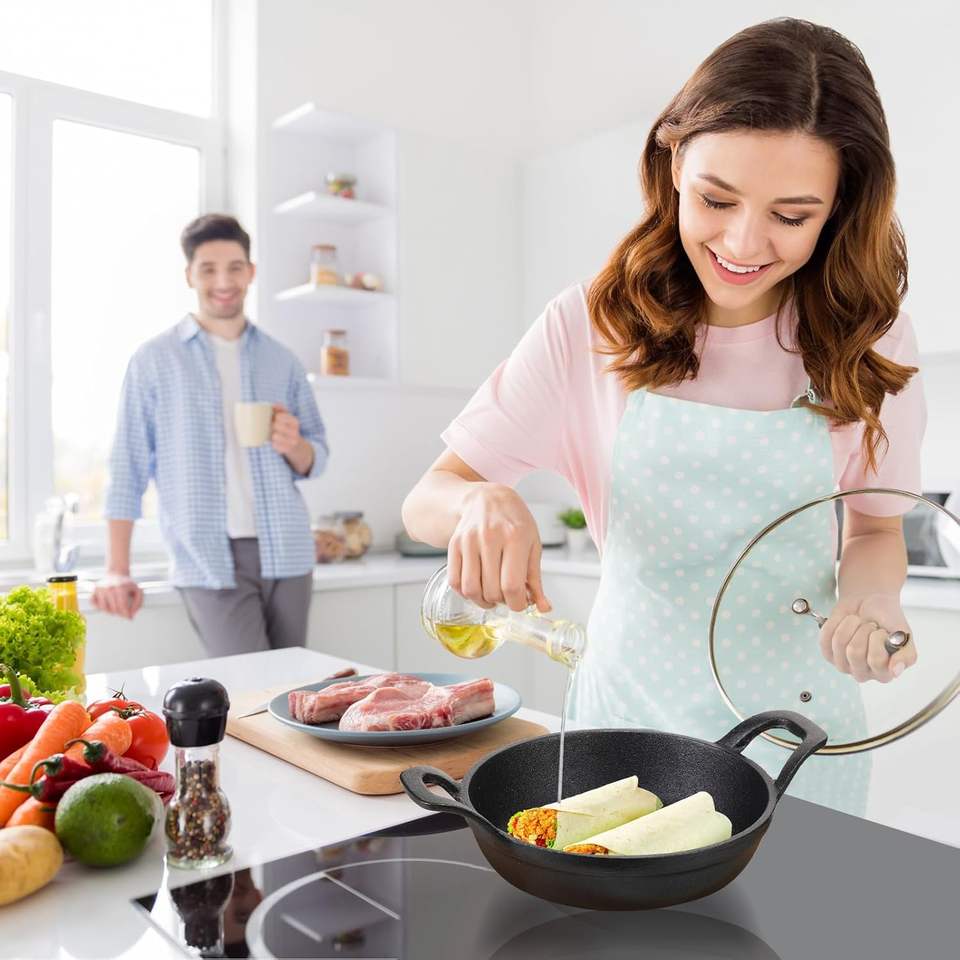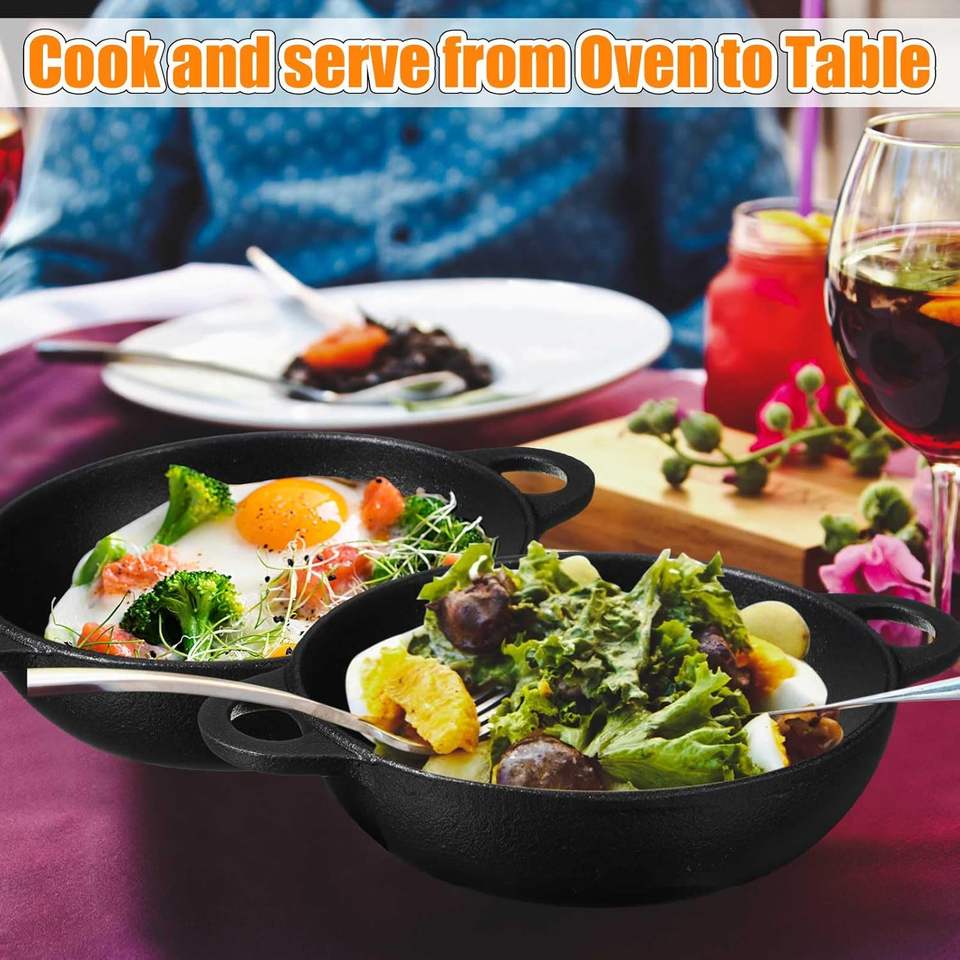 Mini Padella in Ghisa, Piccole Piastre in Ghisa con Base in Legno, Piccola Padella Rotonda, Piatto per Fajitas, Pentola per Cottura