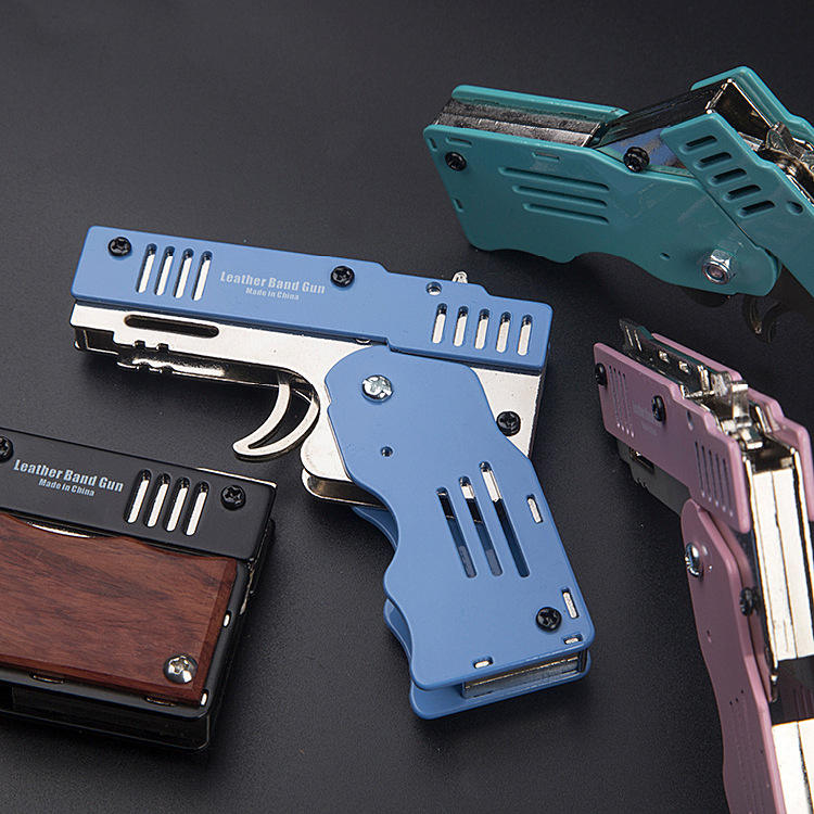 Mini Folding Can Hold the 11 Bursts Rubber Band Gun Keychain Made All Metal Guns Shooting Toy Gifts Boys Outdoor Tools