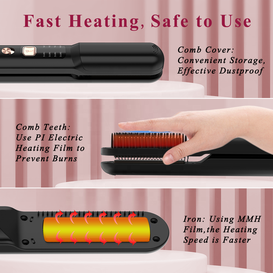 Pettine elettrico per arricciare i capelli, Pettine elettrico per pettinare i capelli, Pettine elettrico per la cura dei capelli, Pettine per capelli lisciante elettrico