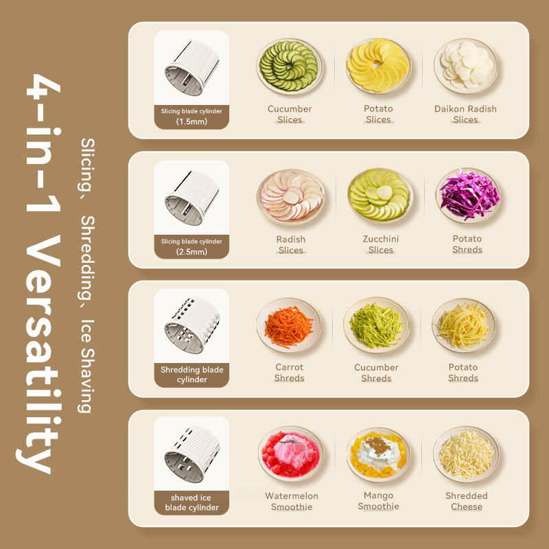 Slushies, grattugia per formaggio, Frantumazione di noci, affettatura di verdura e frutta, tritatura di verdura e frutta