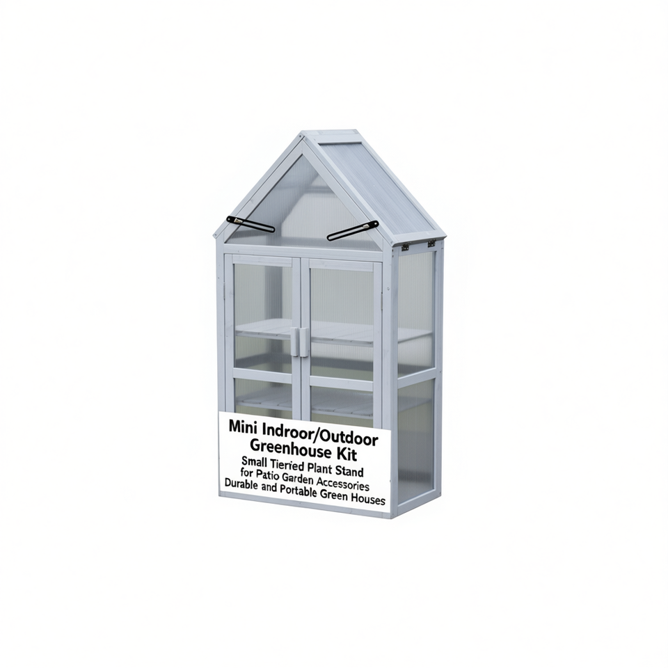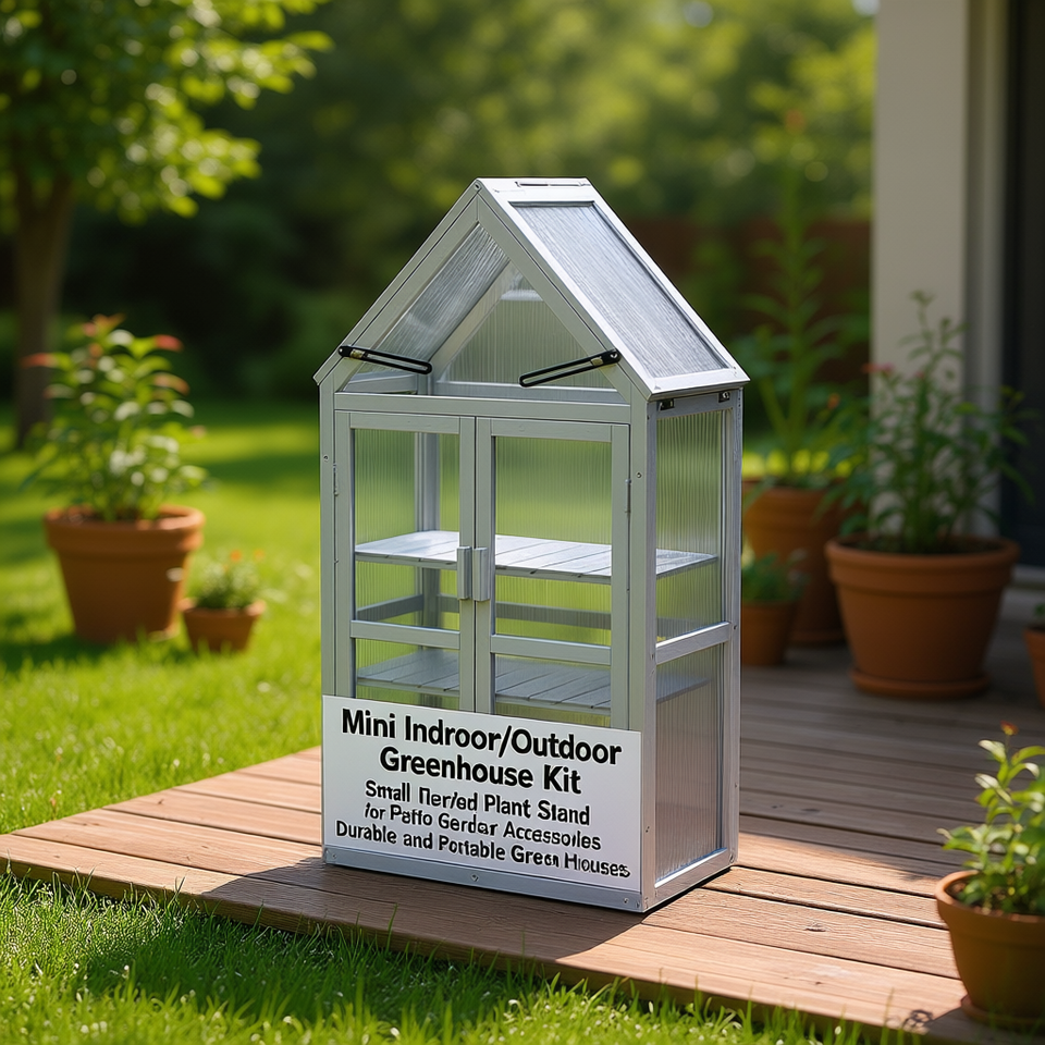 Mini Indoor Outdoor Greenhouse Kit Aluminum Frame Polycarbonate Panels Tiered Plant Stand for Patio Garden Use