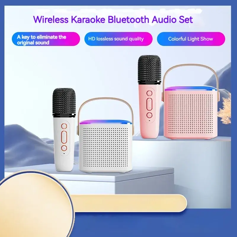 Mini Macchina per Karaoke con Microfono Wireless e Modulatore di Voce - Altoparlante BT Portatile con Luci LED, Sistema per Feste in Casa
