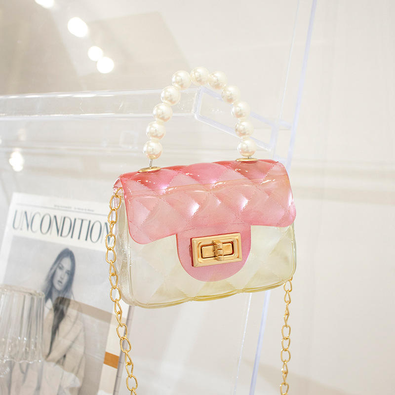Mini Borsa in PVC Trasparente con Tracolla a Catena, Borsetta alla Moda con Motivo Quadrato, Borsa a Tracolla per Giovani Donne in Stile Maniglia in Poliestere
