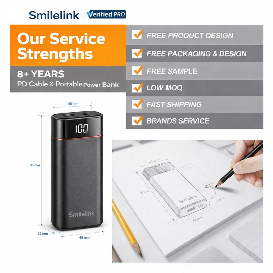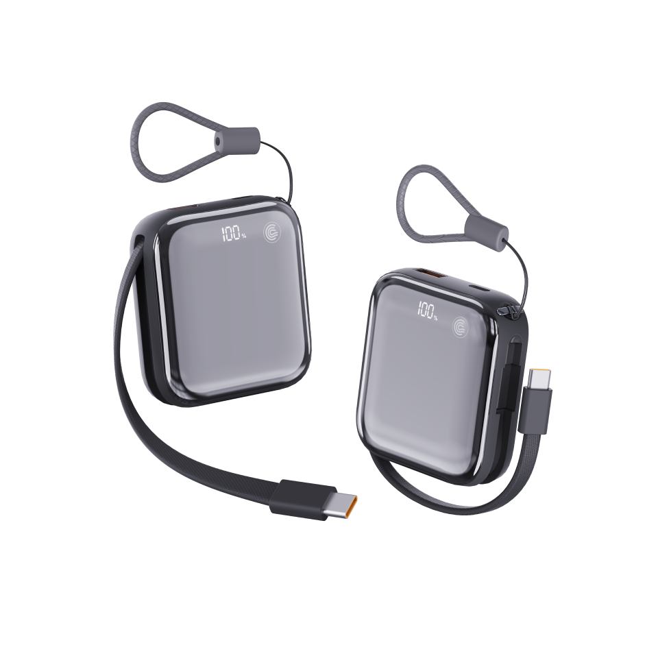 Mini Power Bank Portatile con Cordino Integrato 10000mAh Ingresso Type-C Uscita Type-C/USB Ricarica Rapida 22.5W con Cavo