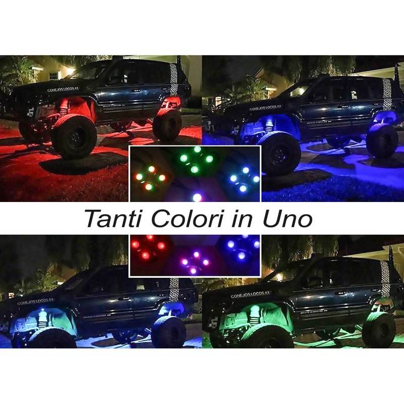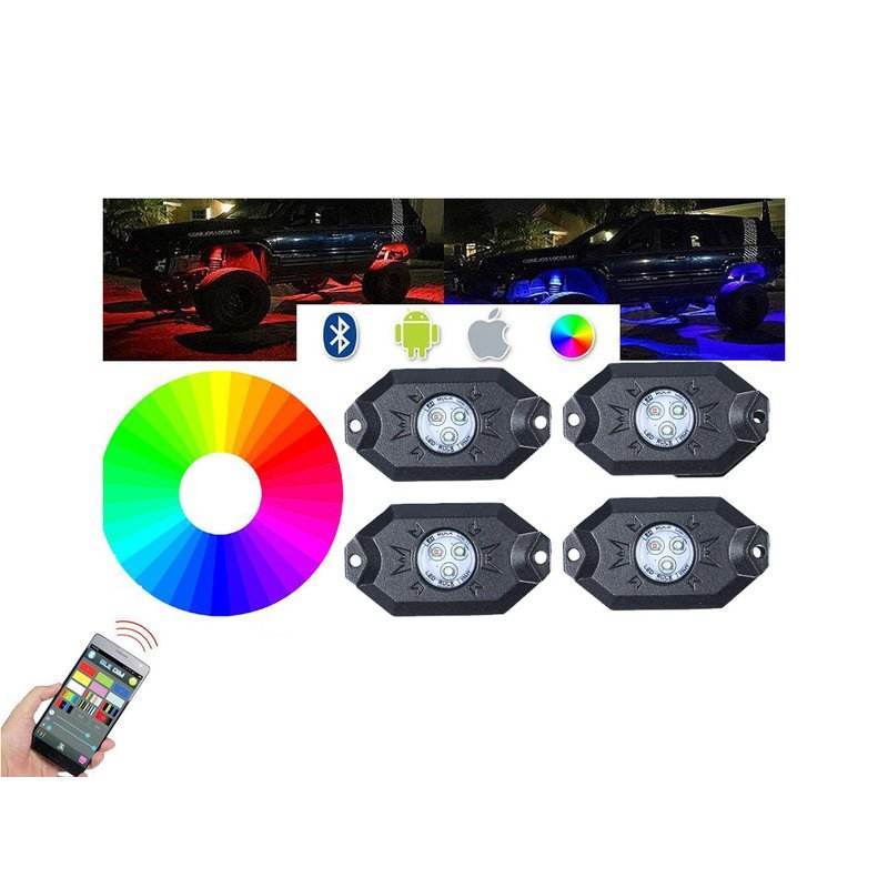 Mini RGB Rock Light Bluetooth APP Music Sensor Kit with 4 LED Lights 12V 24V IP68 Underbody for Jeep Off Road SUV Boat - Car