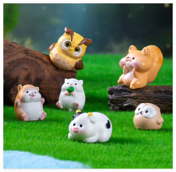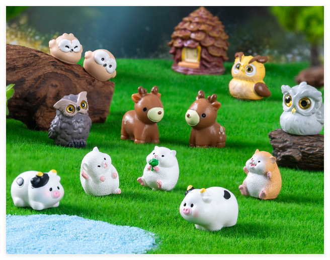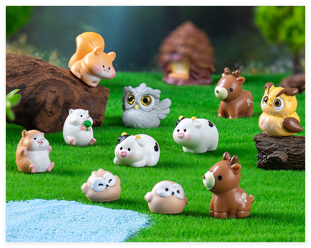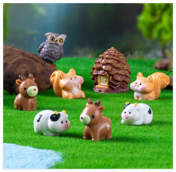 In miniatura 3D animale cartone animato modello di foresta fata decorazione in resina artigianale casa di cervi scoiattolo mucca criceto gufo figurine