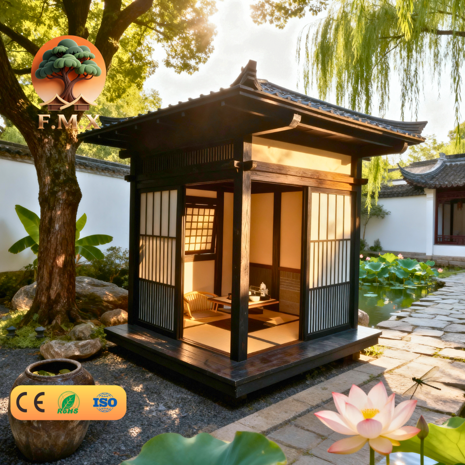 Miniature Wooden Tea Garden House Pre-Assembled Components Entry Apartment Supermarket Office Building School Living Room